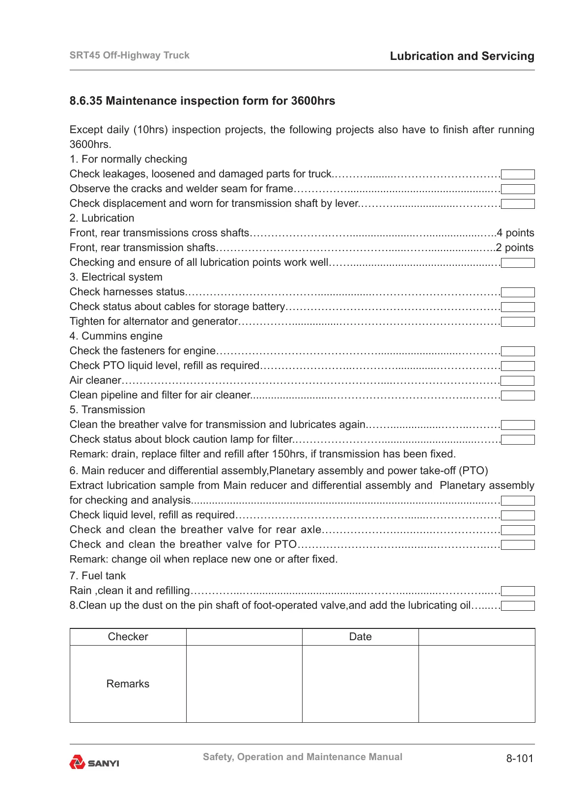 Check leakages, loosened and damaged parts for truck.……….........…………………………