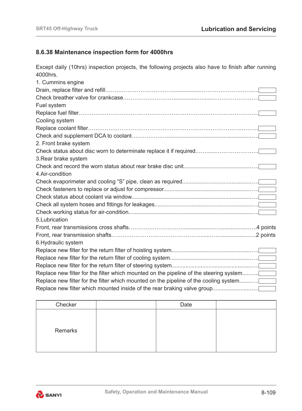 Except daily (10hrs) inspection projects, the following projects also have to nish after running