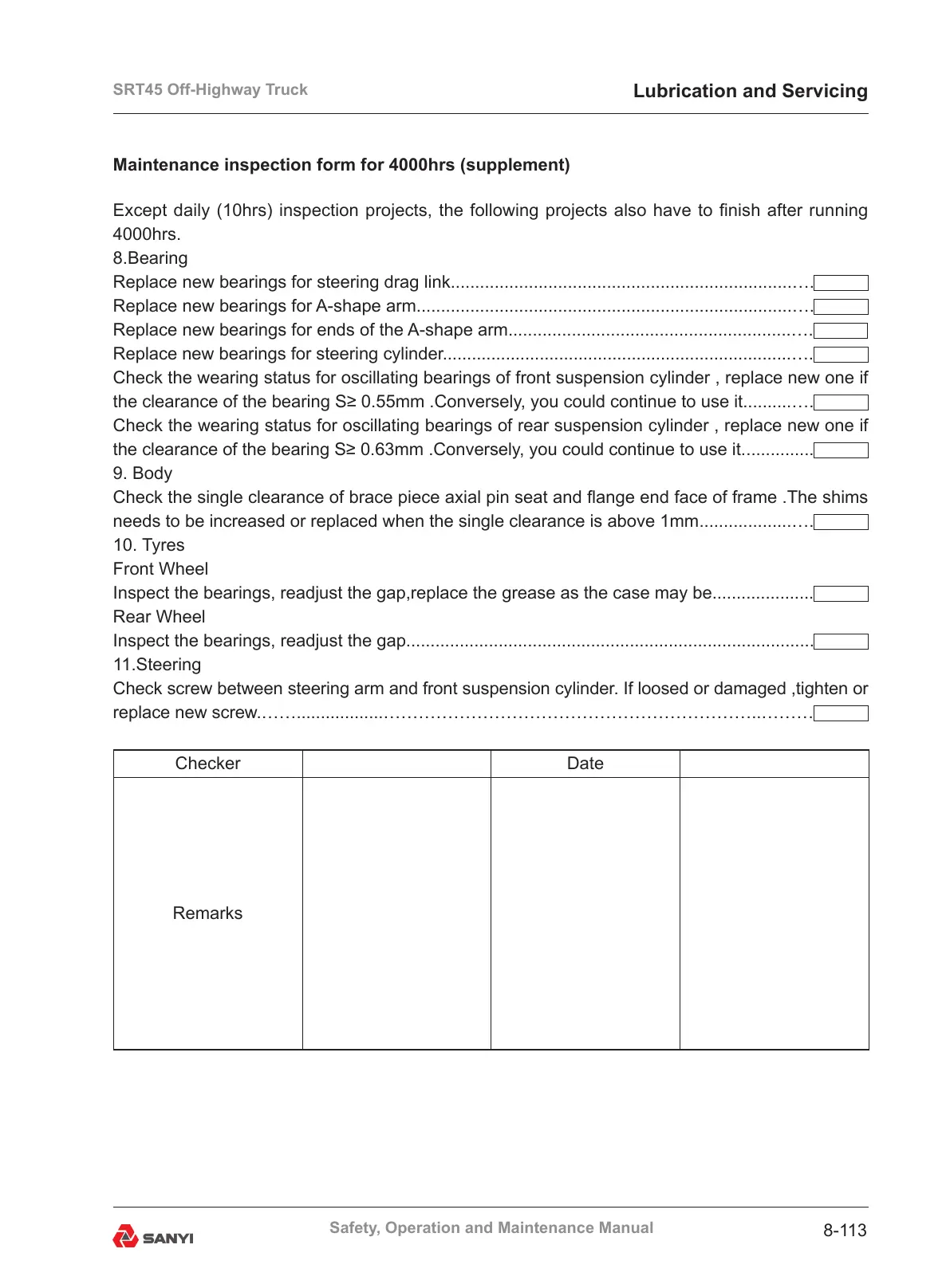 Check the wearing status for oscillating bearings of rear suspension cylinder , replace new one if