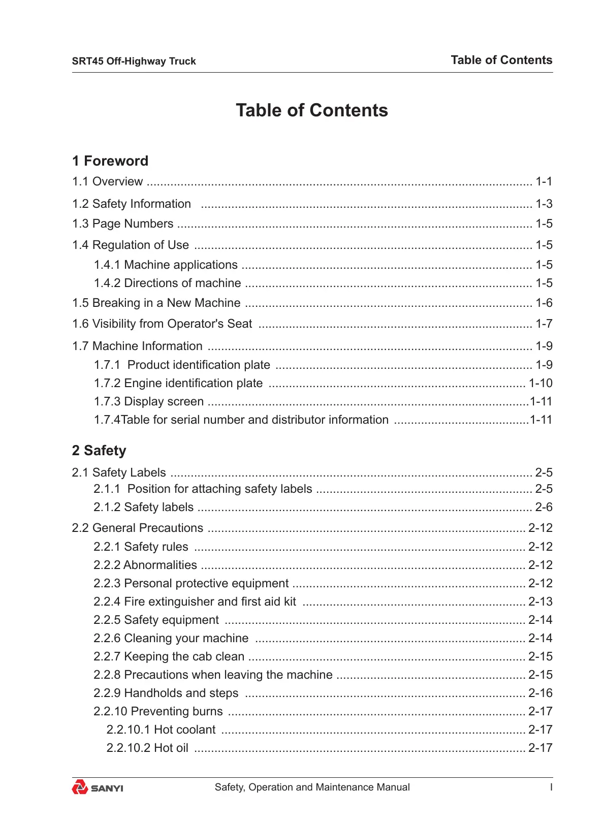 1.6 Visibility from Operator's Seat ................................................................................. 1-7
