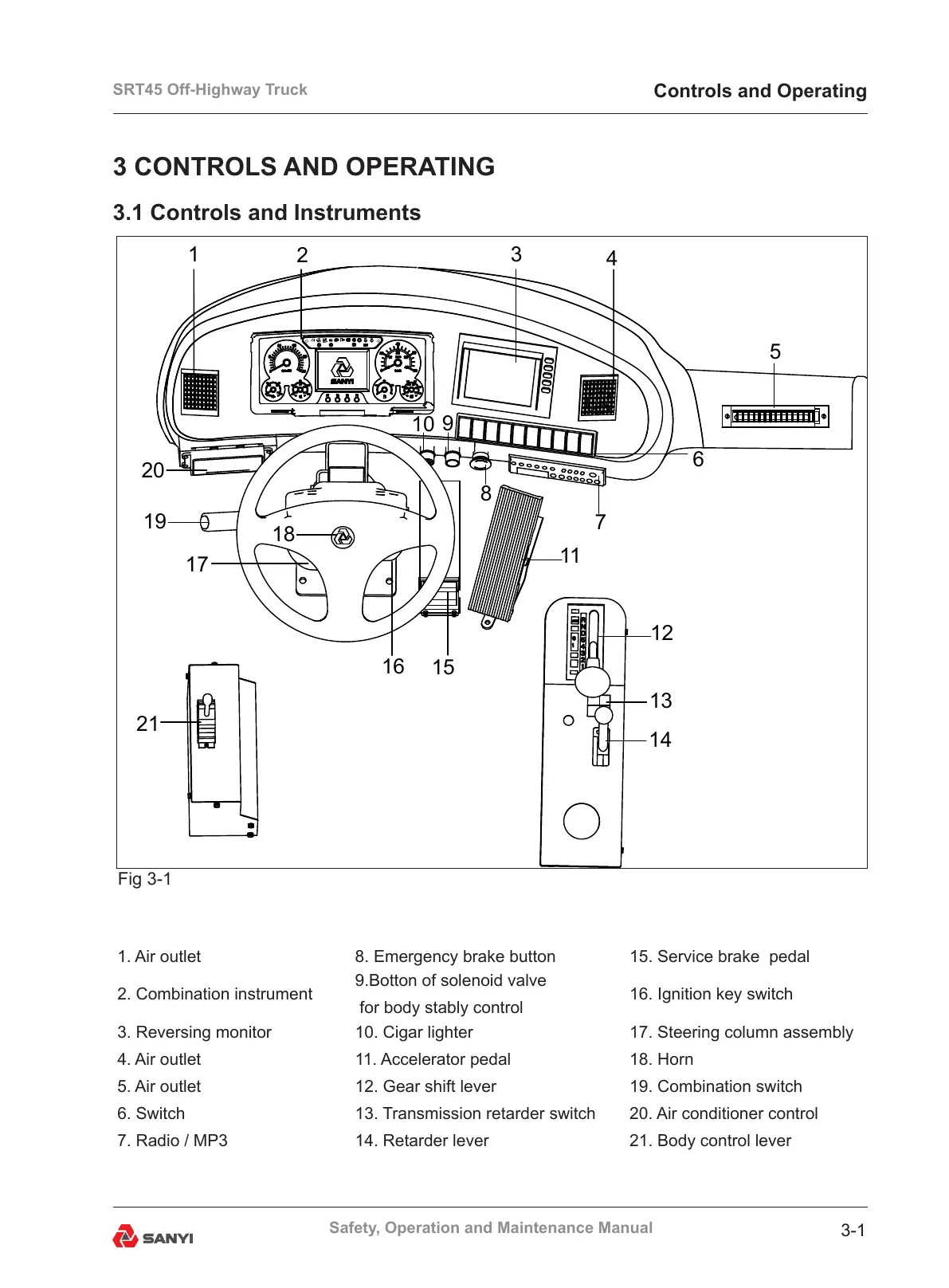 7. Radio / MP3 14. Retarder lever 21. Body control lever