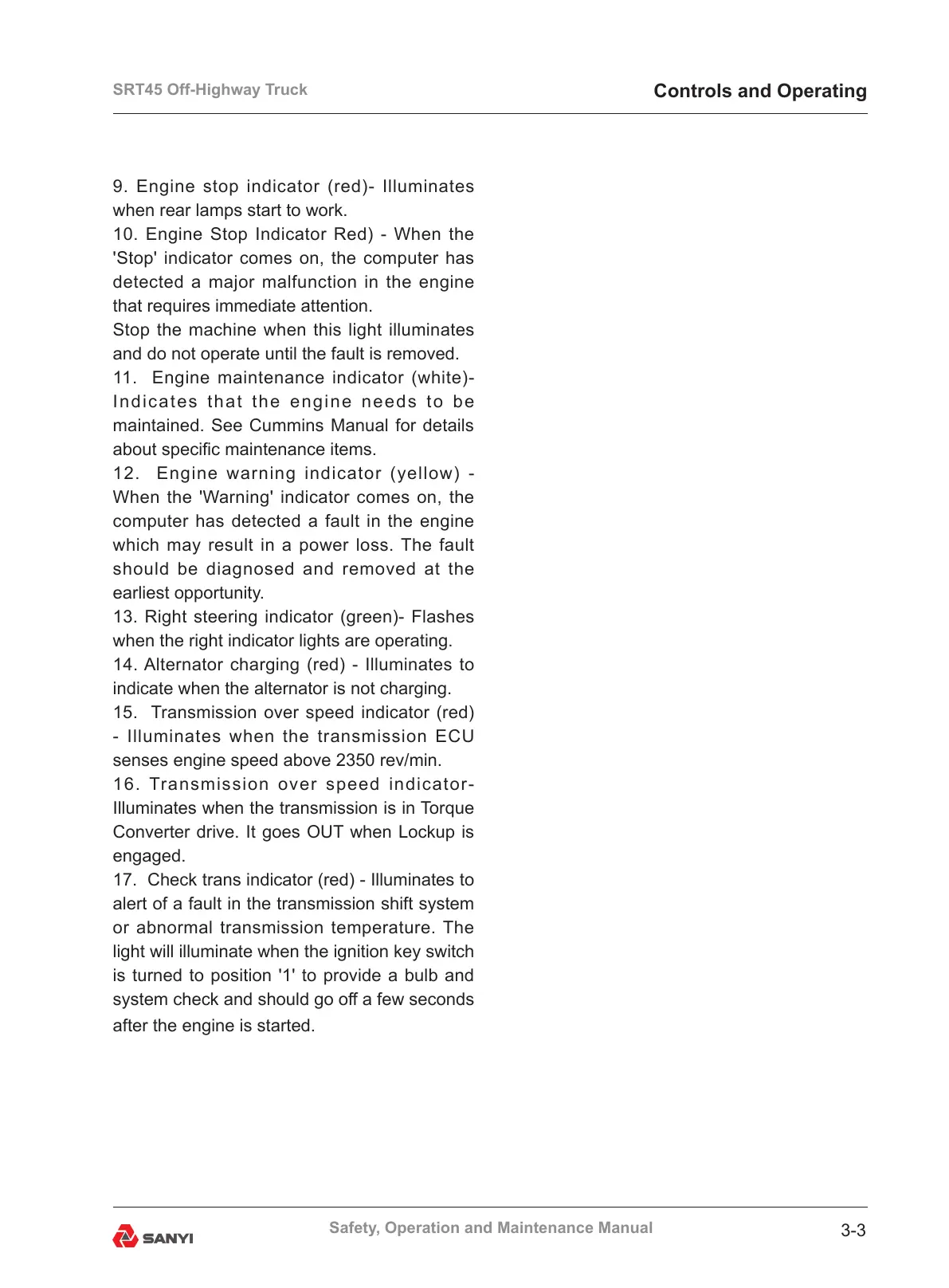 10. Engine Stop Indicator Red) - When the