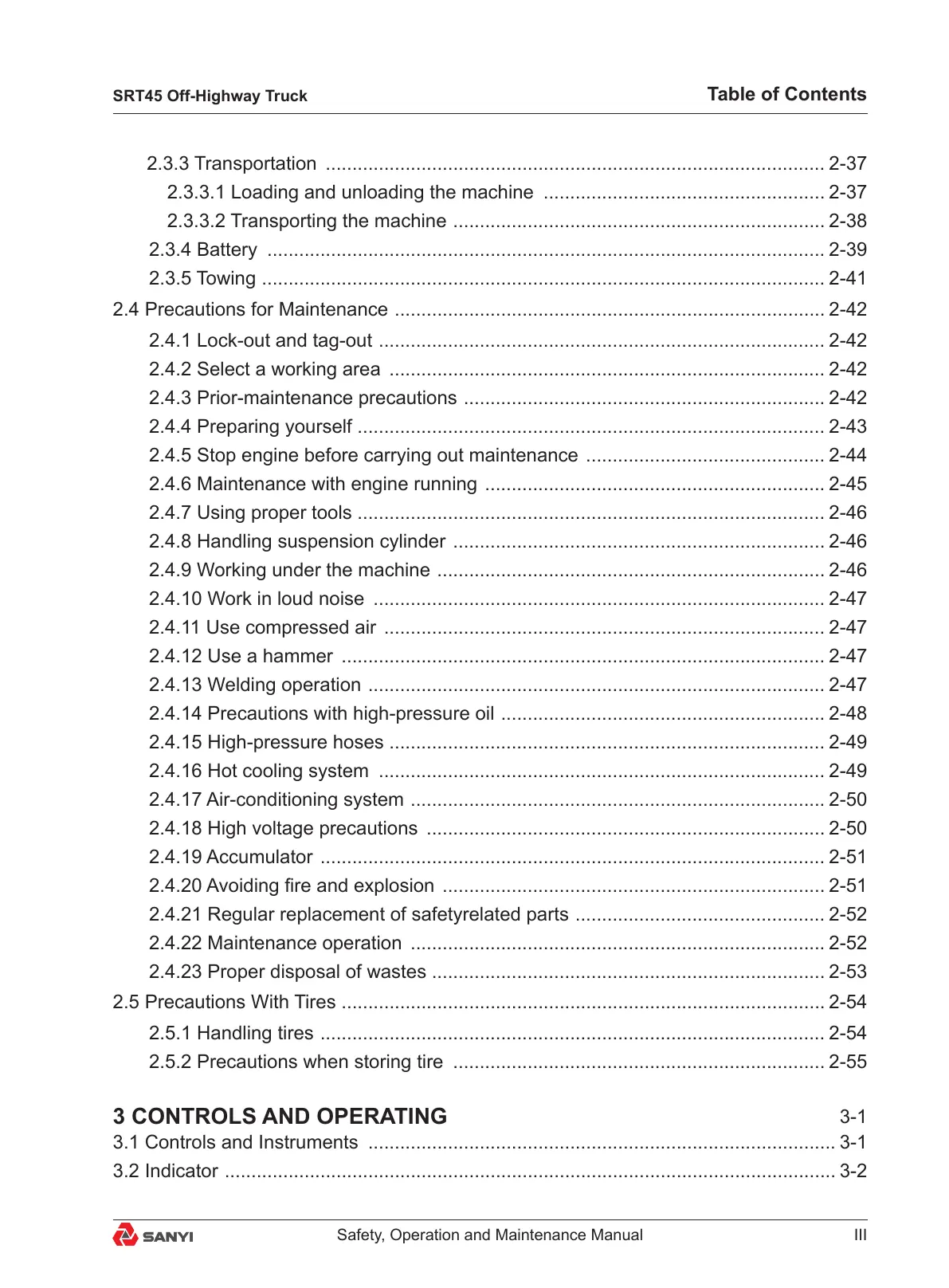 2.5 Precautions With Tires ........................................................................................... 2-54