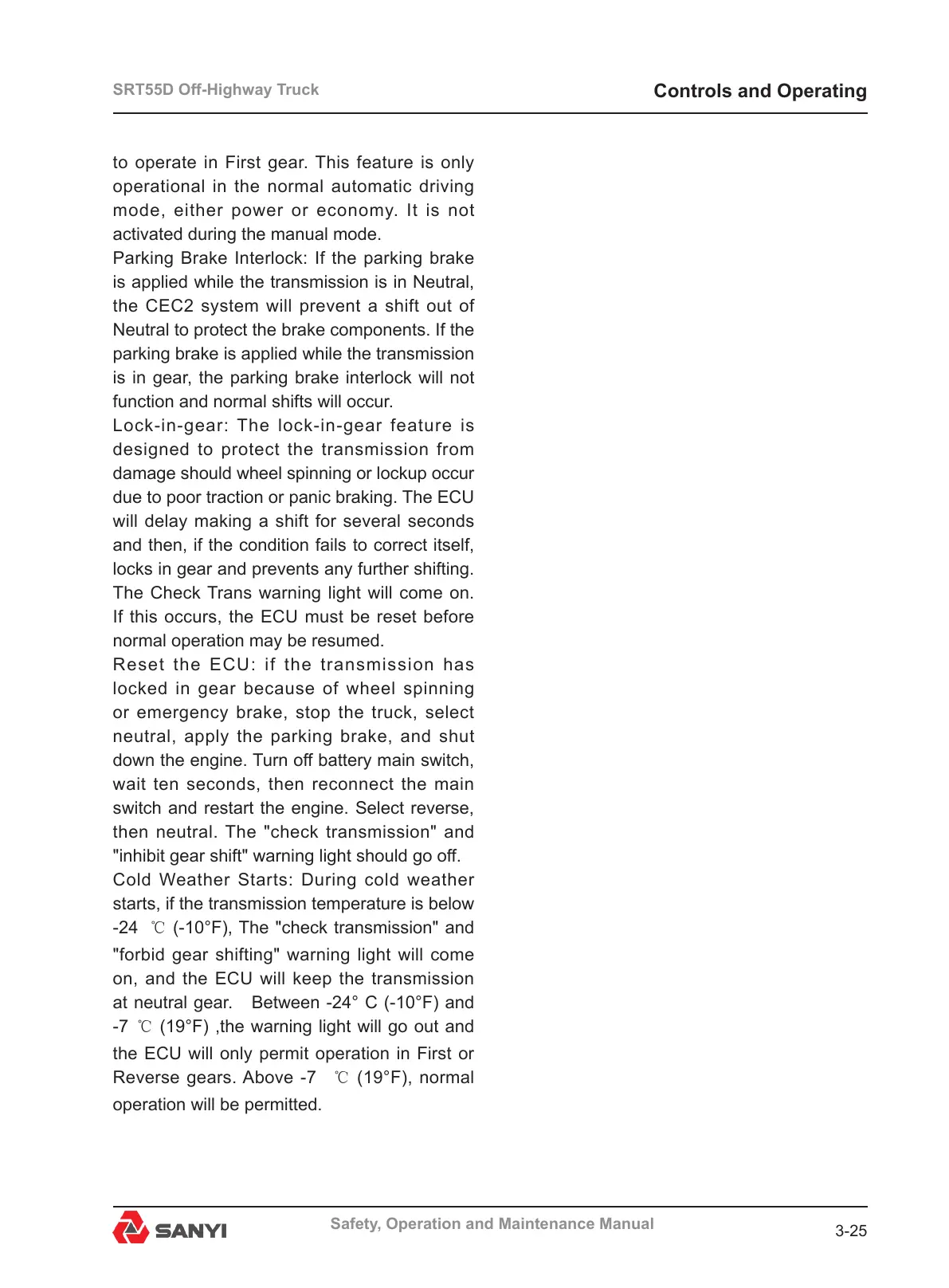 at neutral gear. Between -24° C (-10°F) and