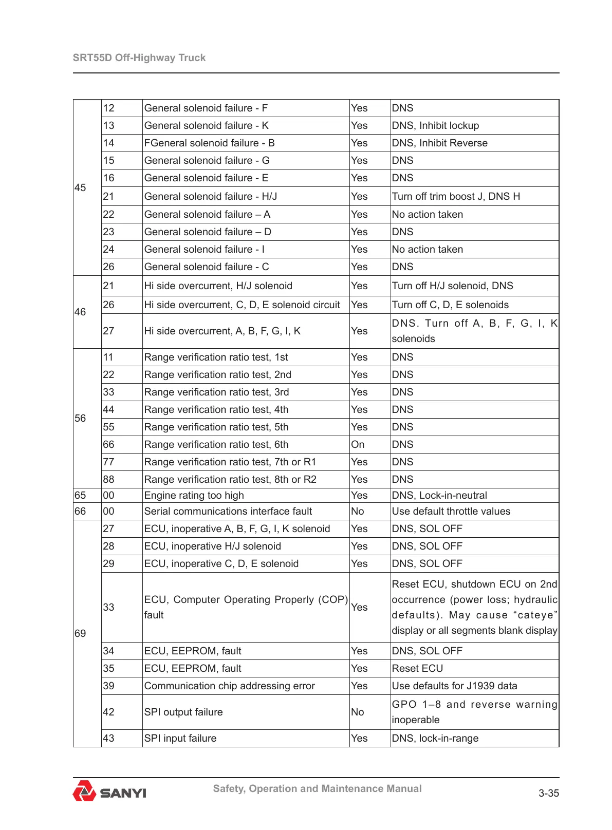 34 ECU, EEPROM, fault Yes DNS, SOL OFF