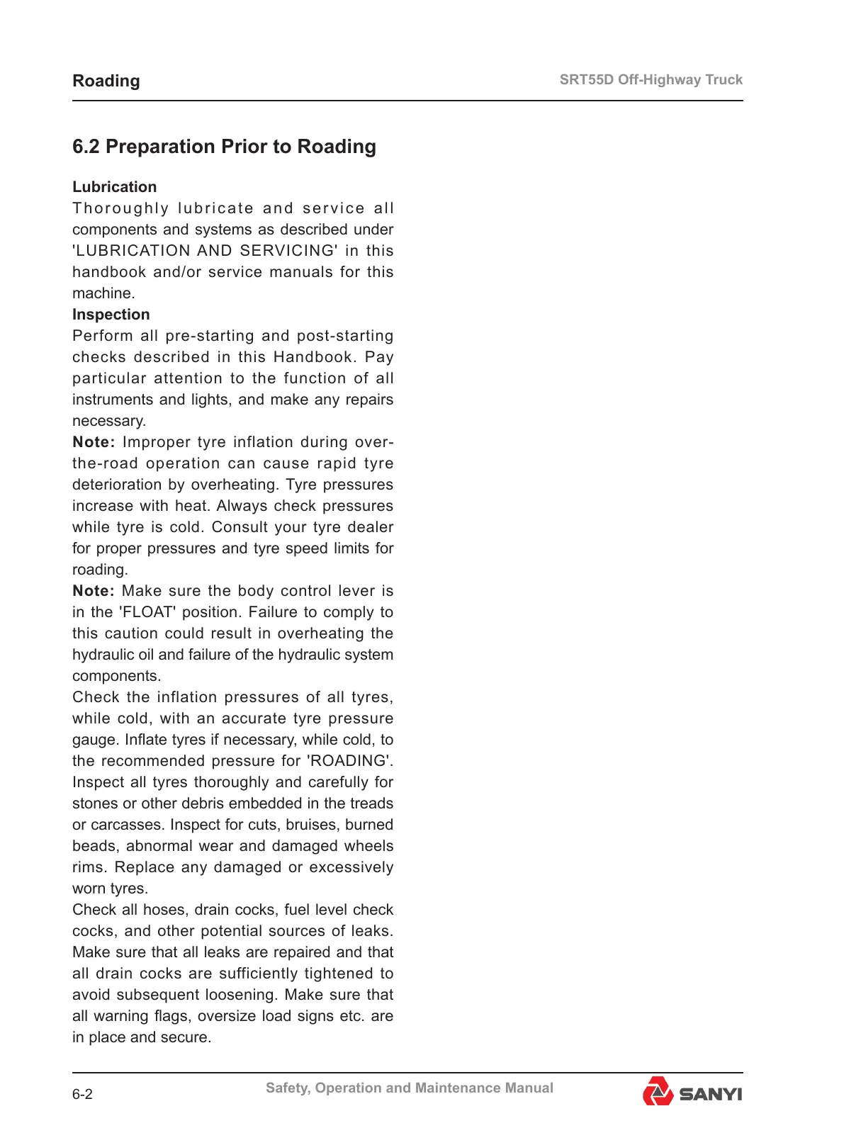 6.2 Preparation Prior to Roading