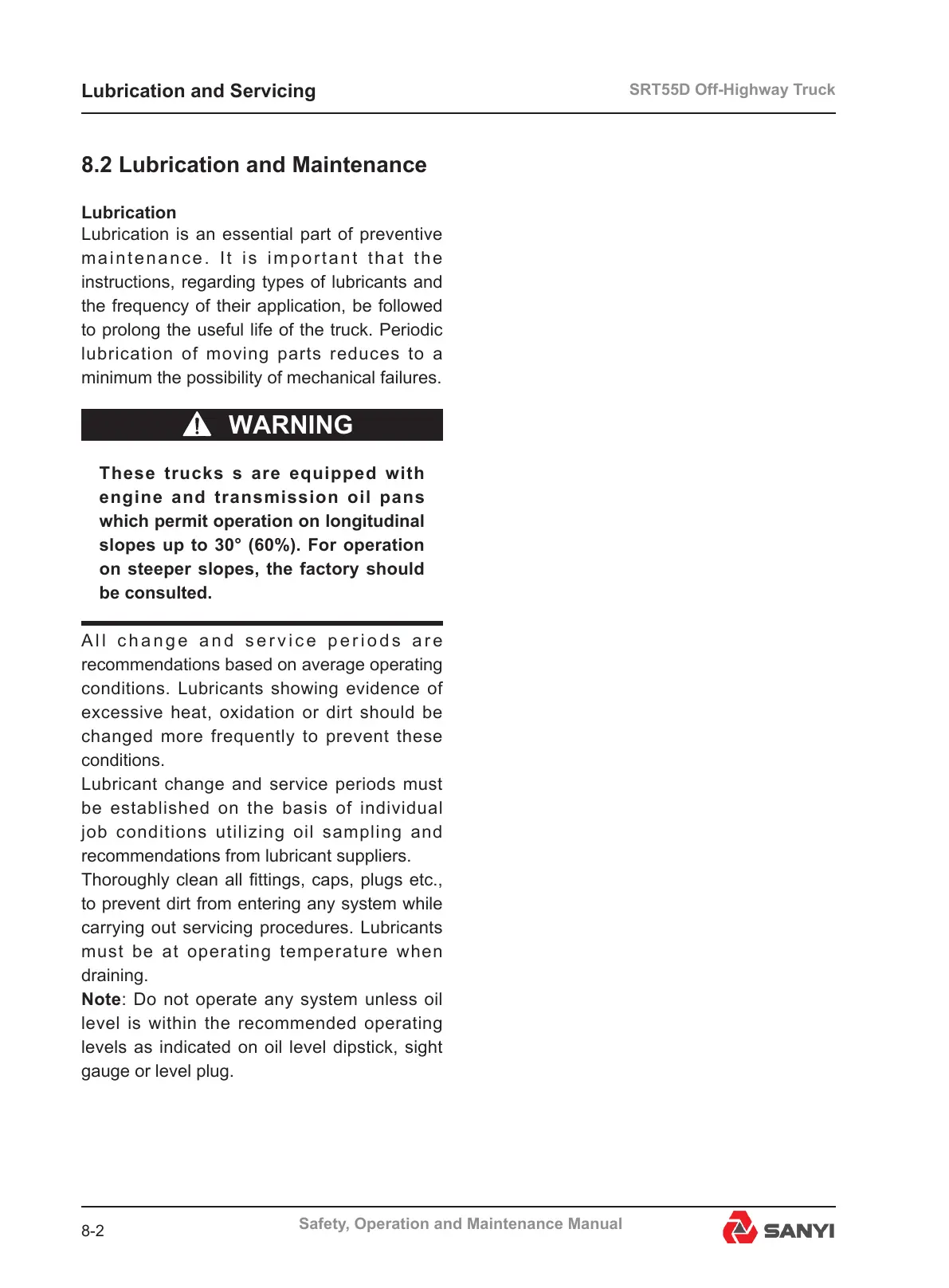 8.2 Lubrication and Maintenance