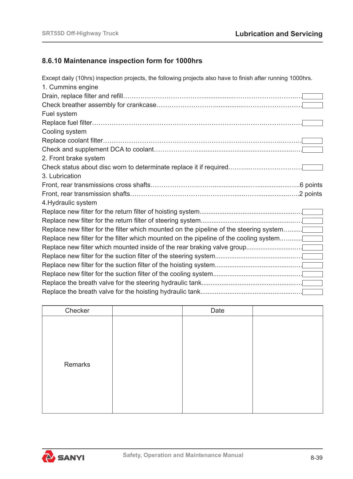8.6.10 Maintenance inspection form for 1000hrs