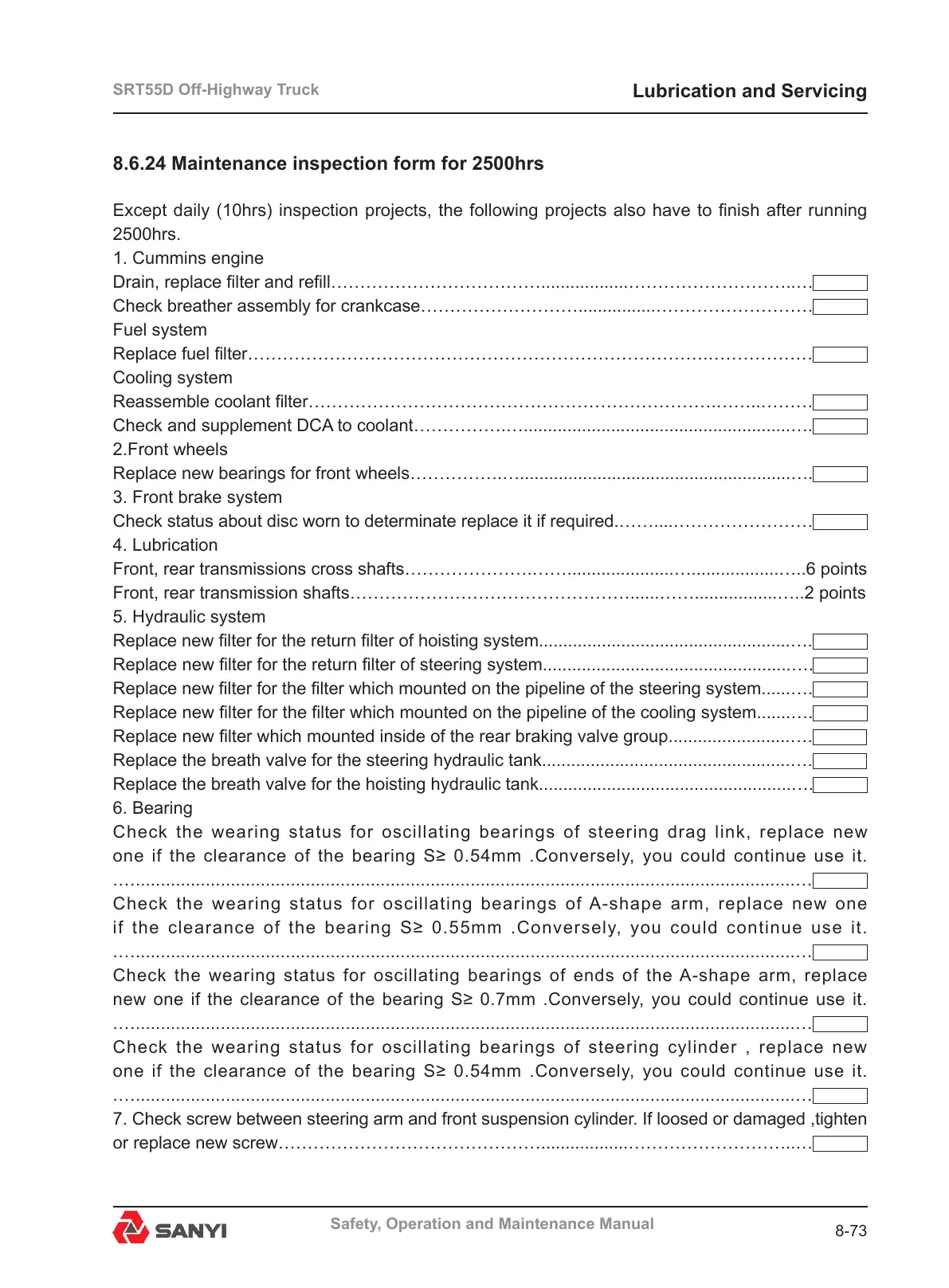 Except daily (10hrs) inspection projects, the following projects also have to nish after running