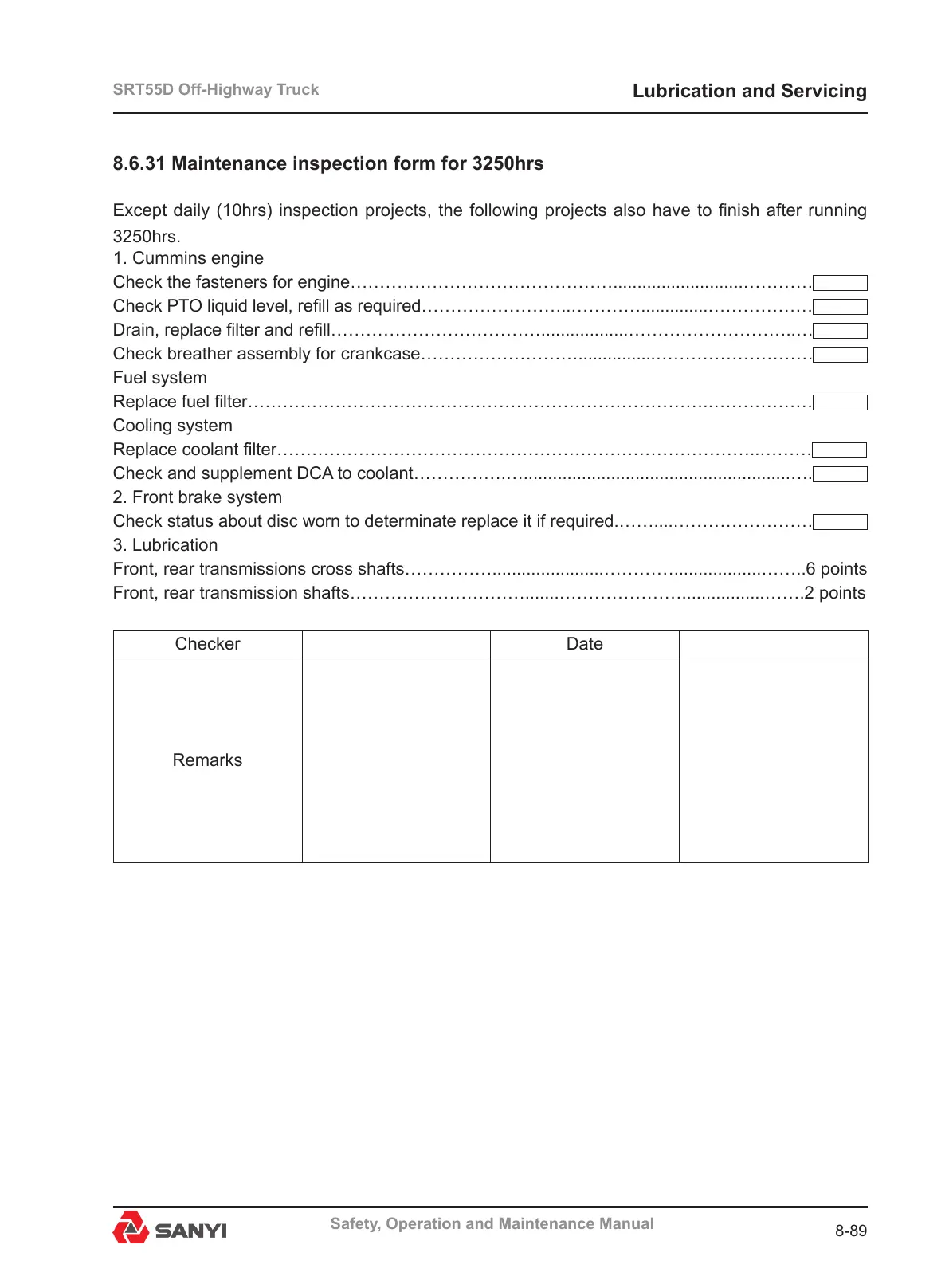 Check PTO liquid level, rell as required……………………..…………..............………………