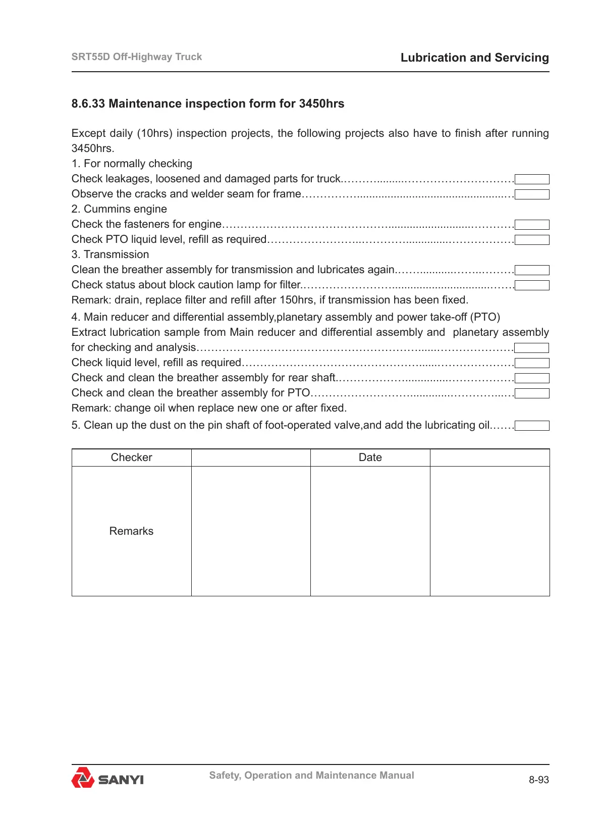 8.6.33 Maintenance inspection form for 3450hrs