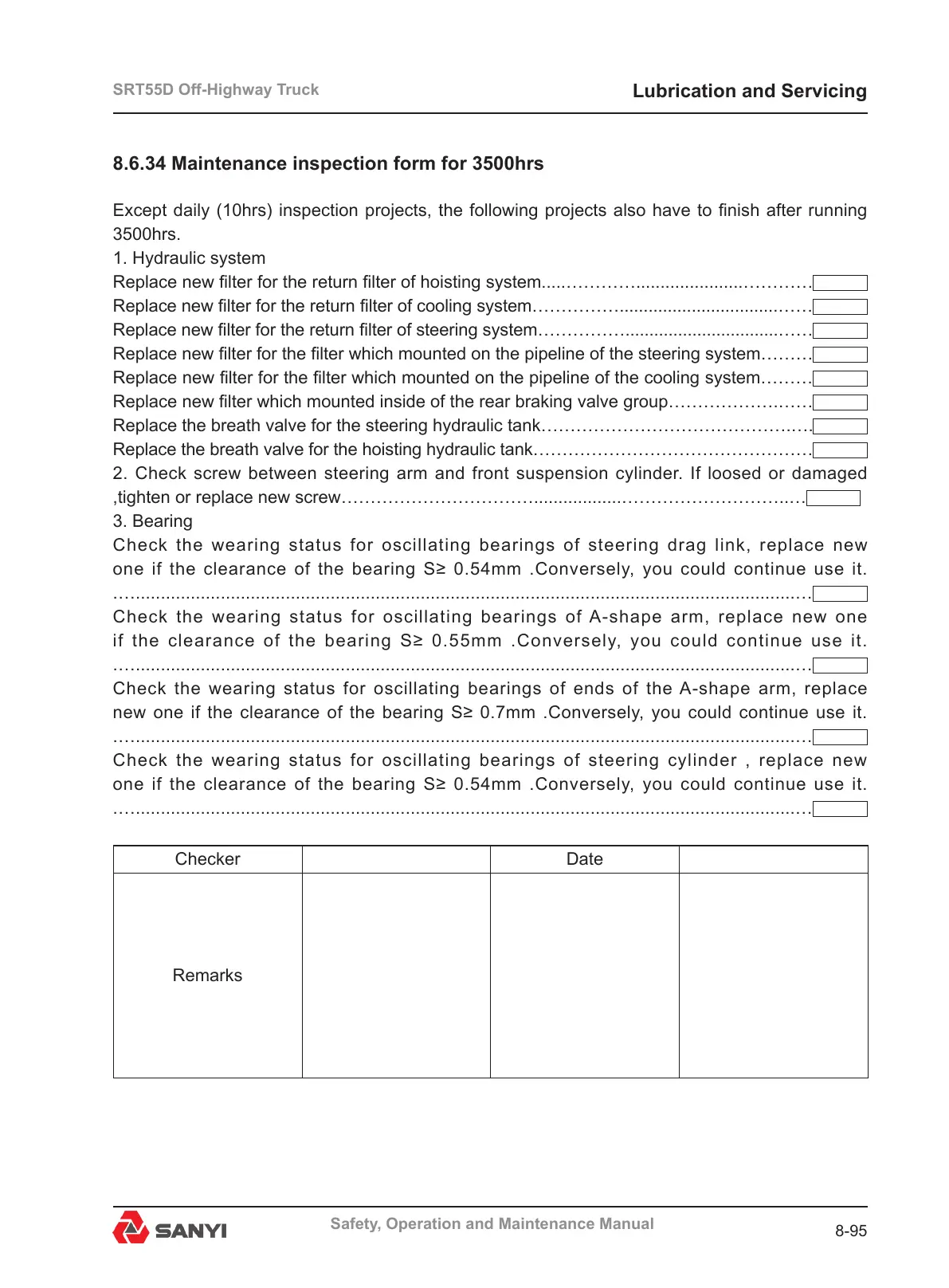 8.6.34 Maintenance inspection form for 3500hrs
