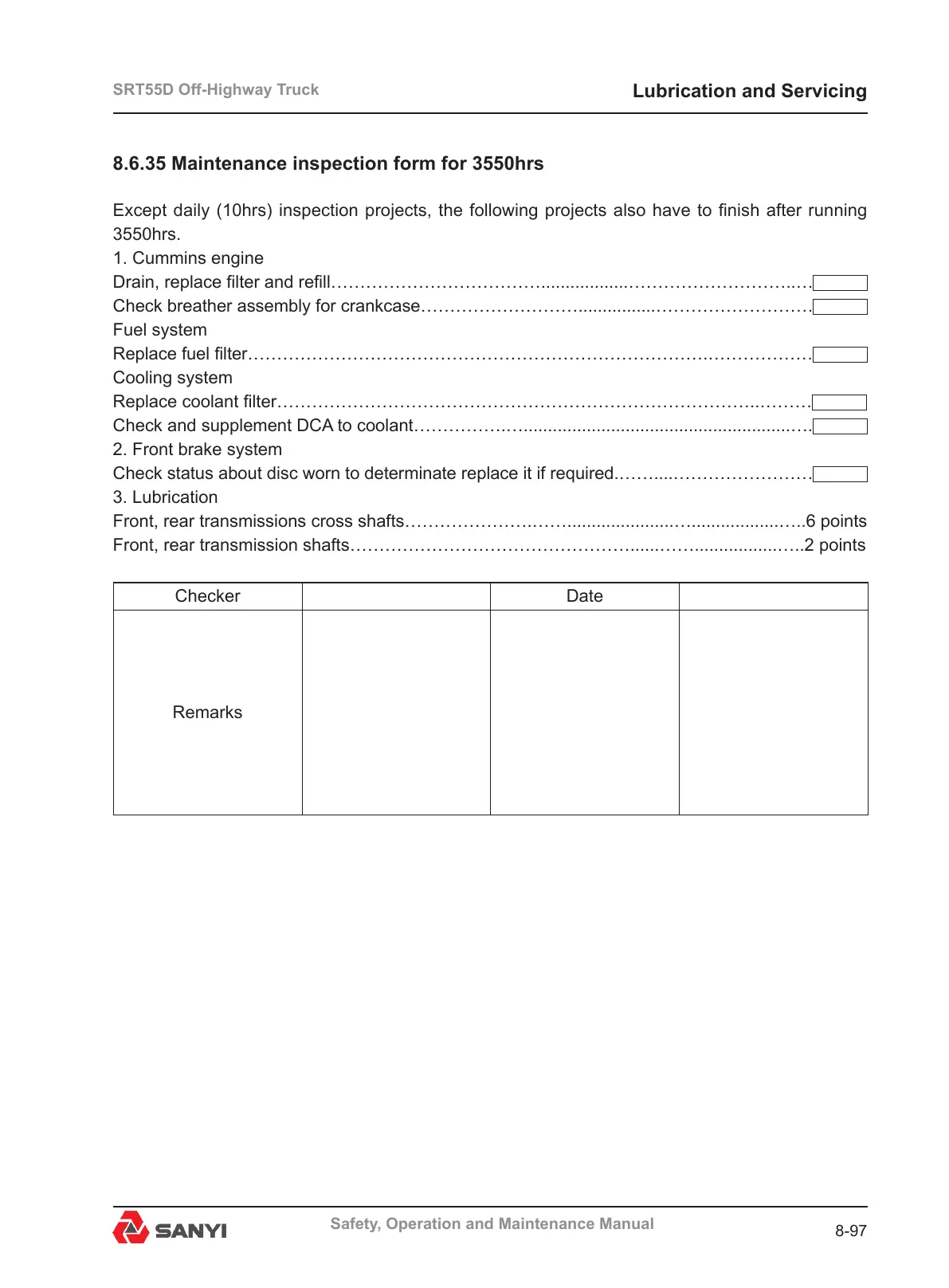 8.6.35 Maintenance inspection form for 3550hrs