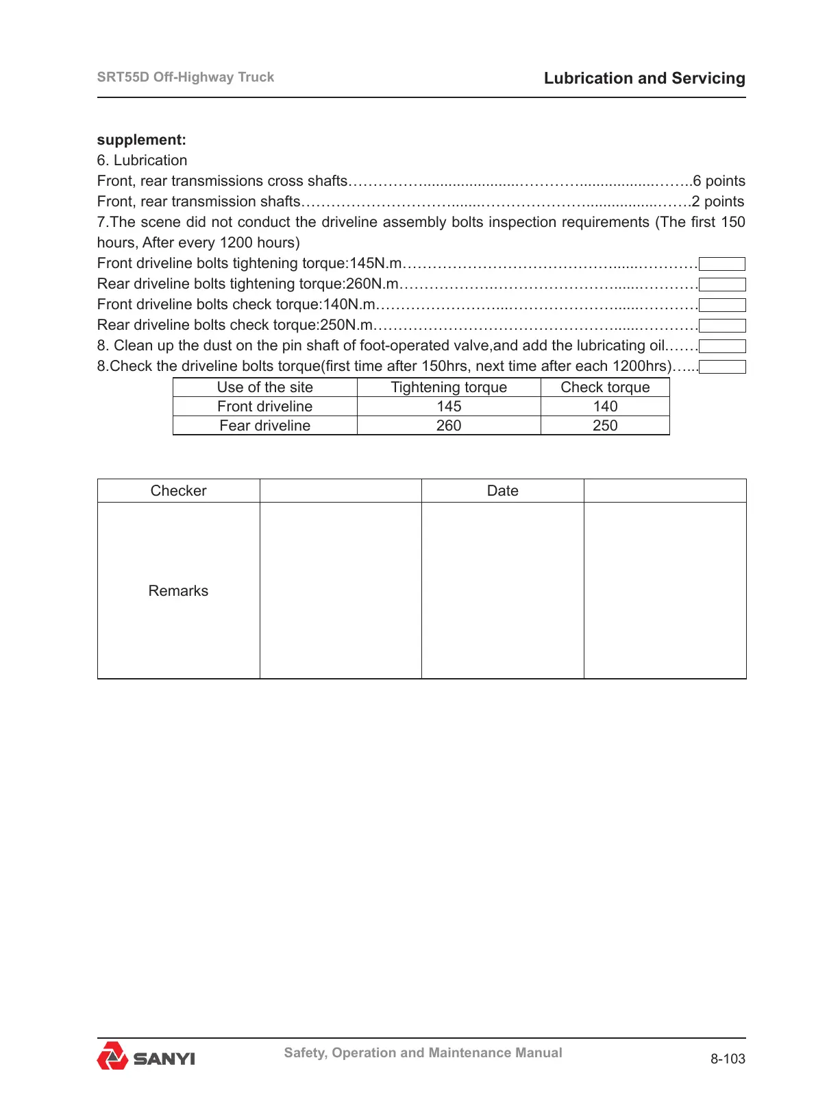 8.Check the driveline bolts torque(rst time after 150hrs, next time after each 1200hrs)…...