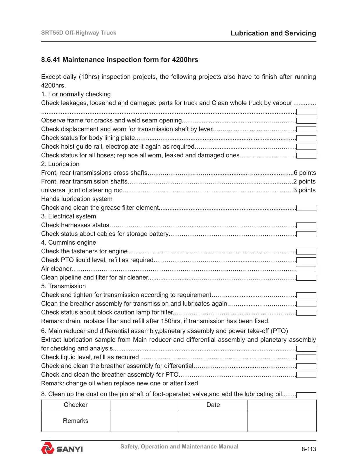 8.6.41 Maintenance inspection form for 4200hrs