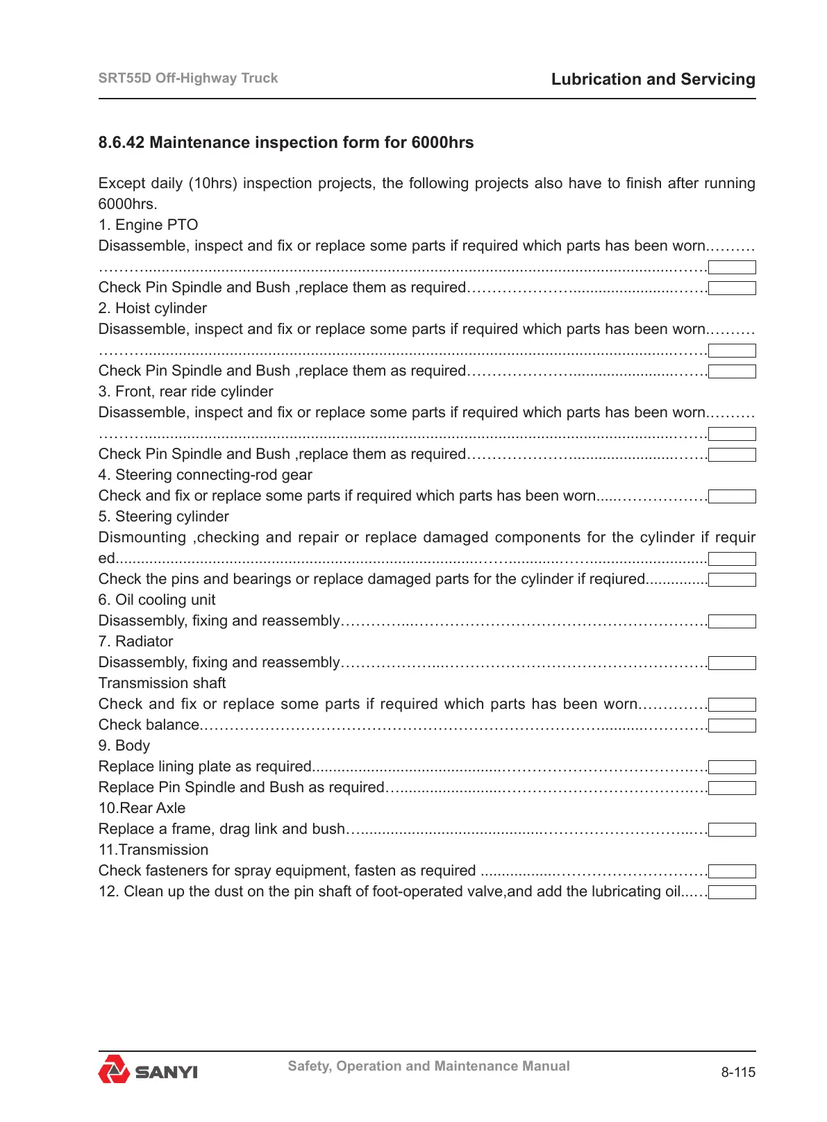 Replace Pin Spindle and Bush as required…........................……………………………….….
