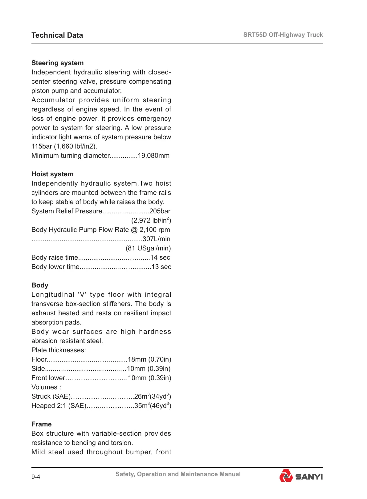 Body Hydraulic Pump Flow Rate @ 2,100 rpm