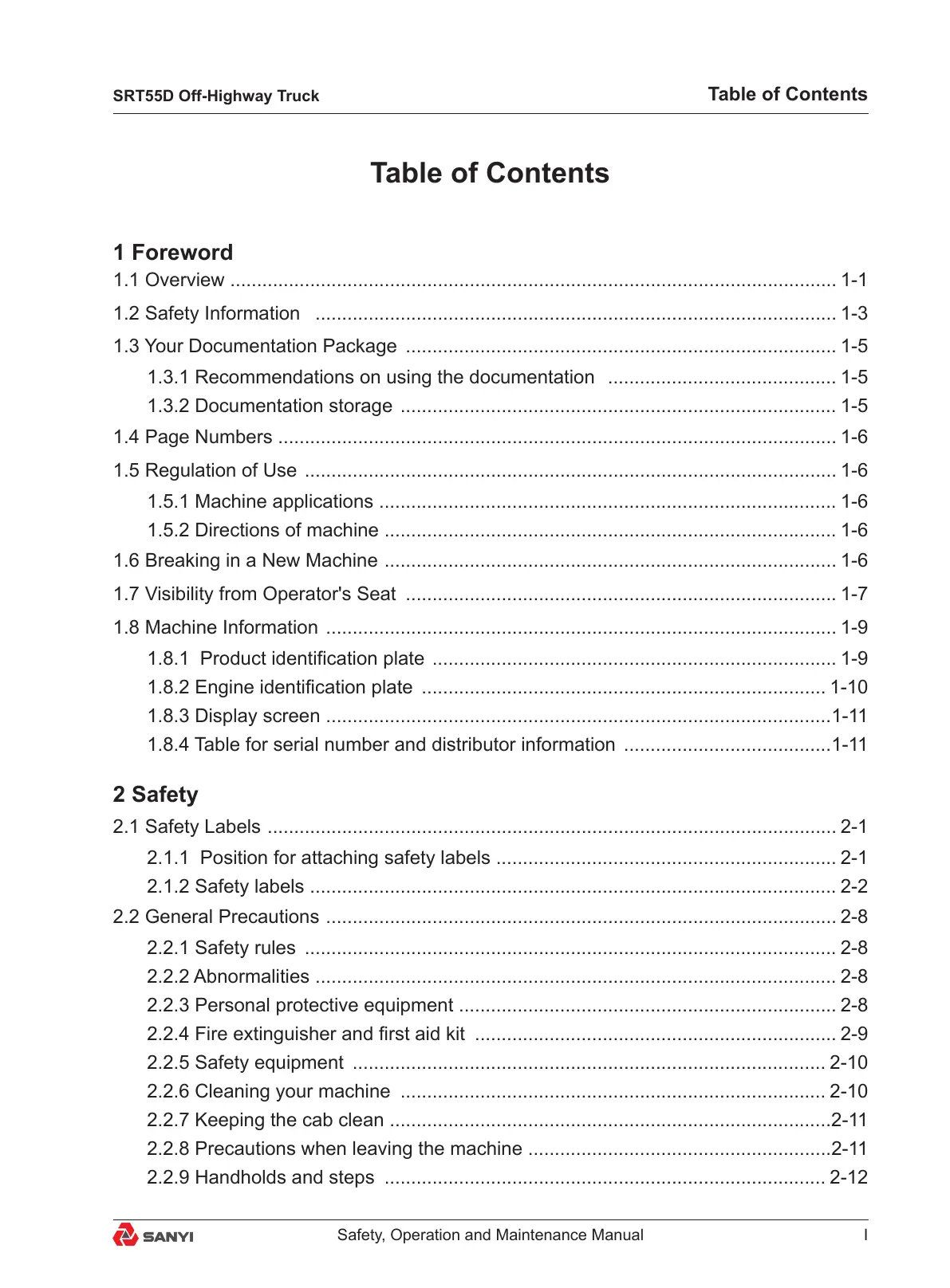 1.7 Visibility from Operator's Seat ................................................................................. 1-7