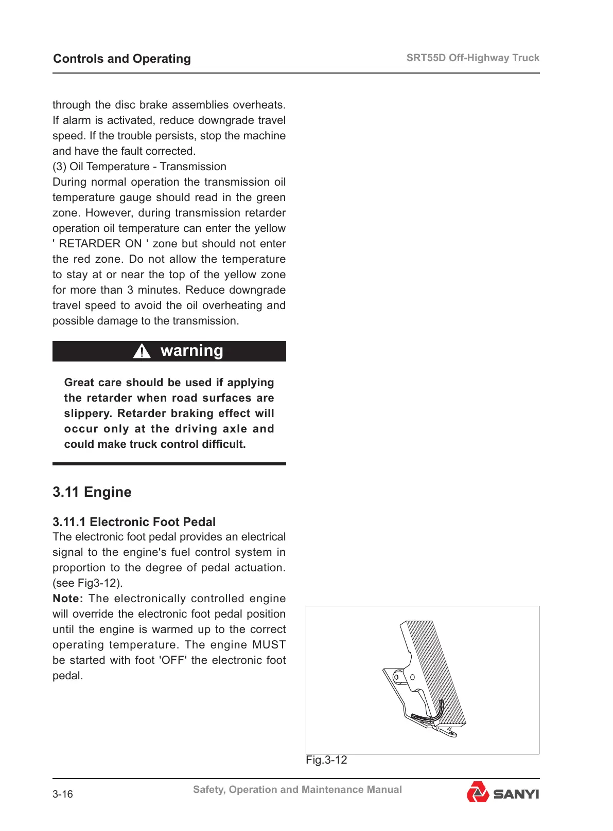 slippery. Retarder braking effect will