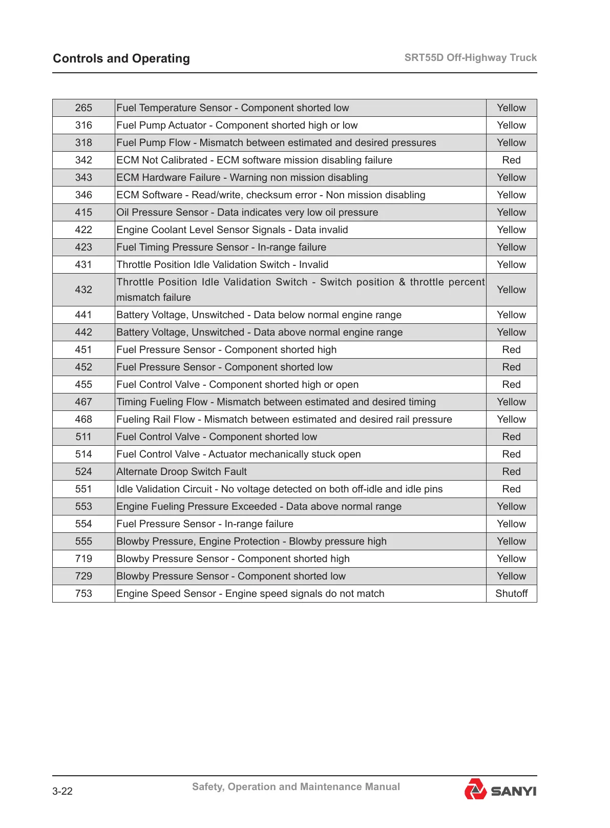 554 Fuel Pressure Sensor - In-range failure Yellow