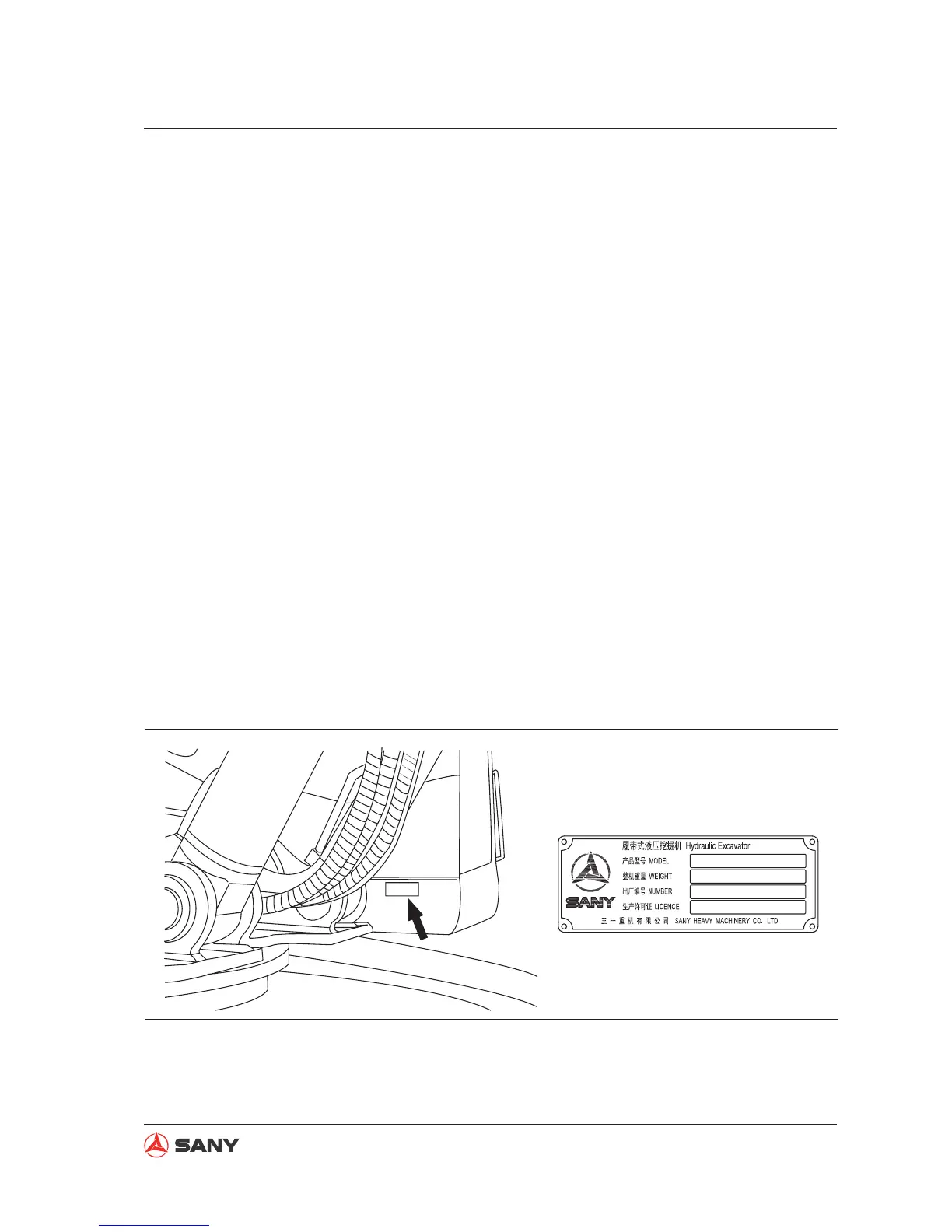 The serial numbers and model numbers on the components are the only numbers that your Sany