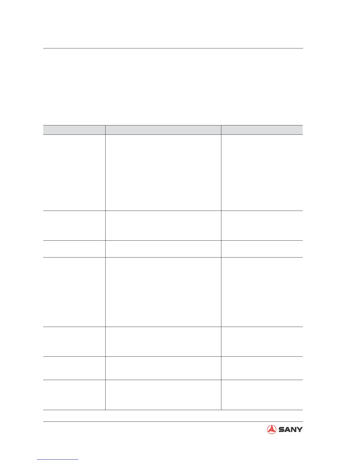 Check the engine according to the following table if any failure occurs to it. Contact your Sany