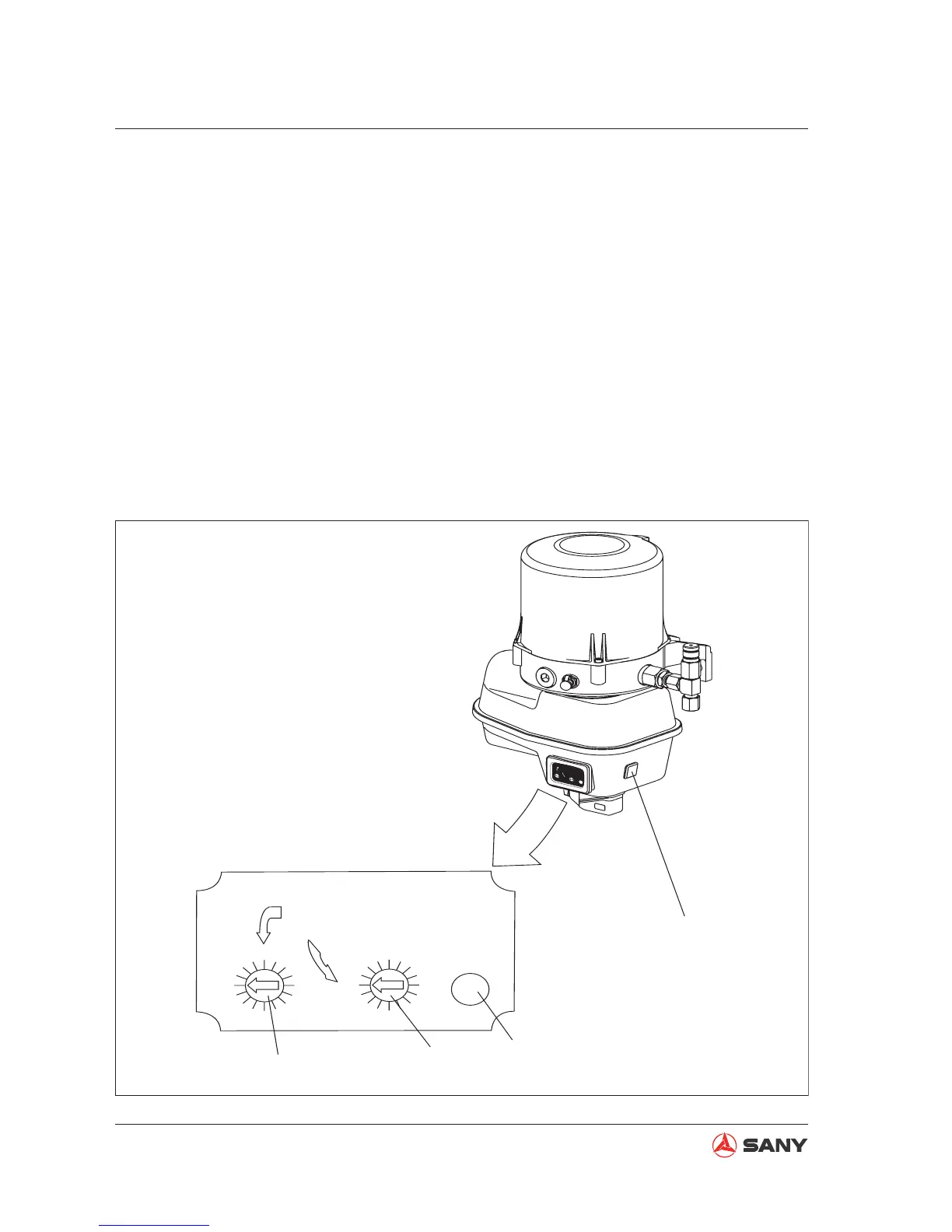 the cab's central lubrication system indicator fl ashes after the excavator is powered on; the yel-