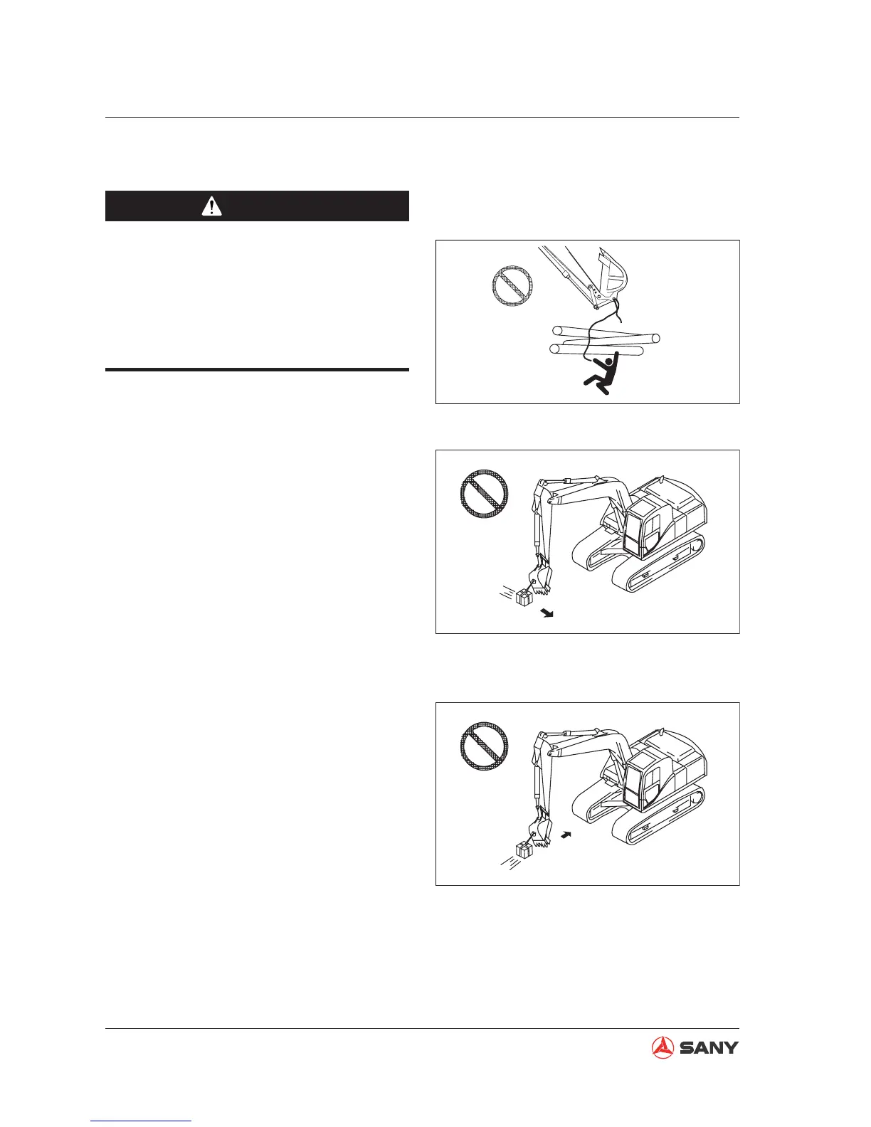 Never swing or operate the work equip-