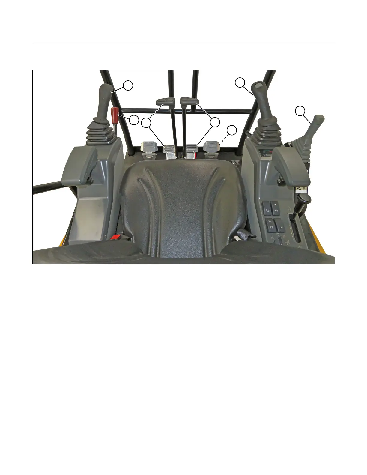 1. Left joystick (page 3-6) 2. Hydraulic lockout control lever (page 3-5)