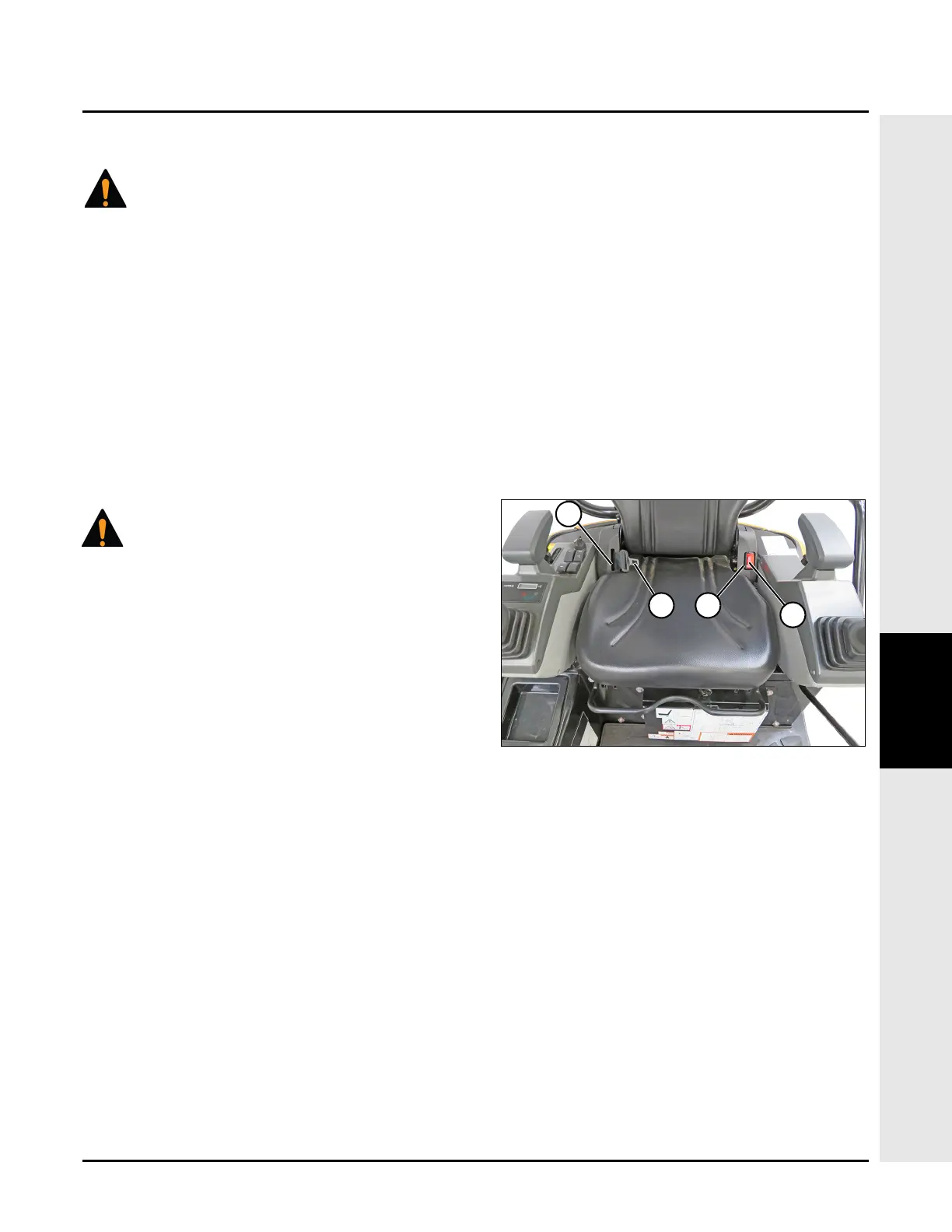 • Always keep the seat belt fastened during machine operation. Never twist the seat belt