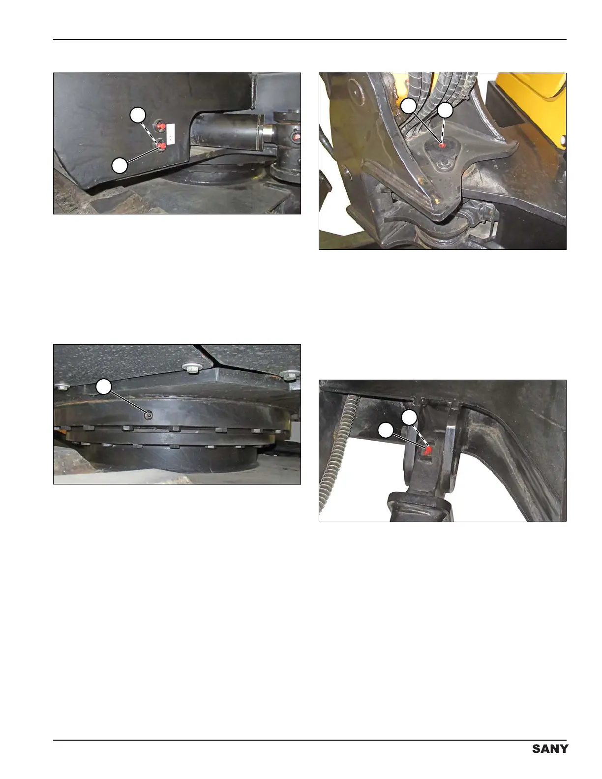 1. Grease the two fittings on the swing bearing (1).