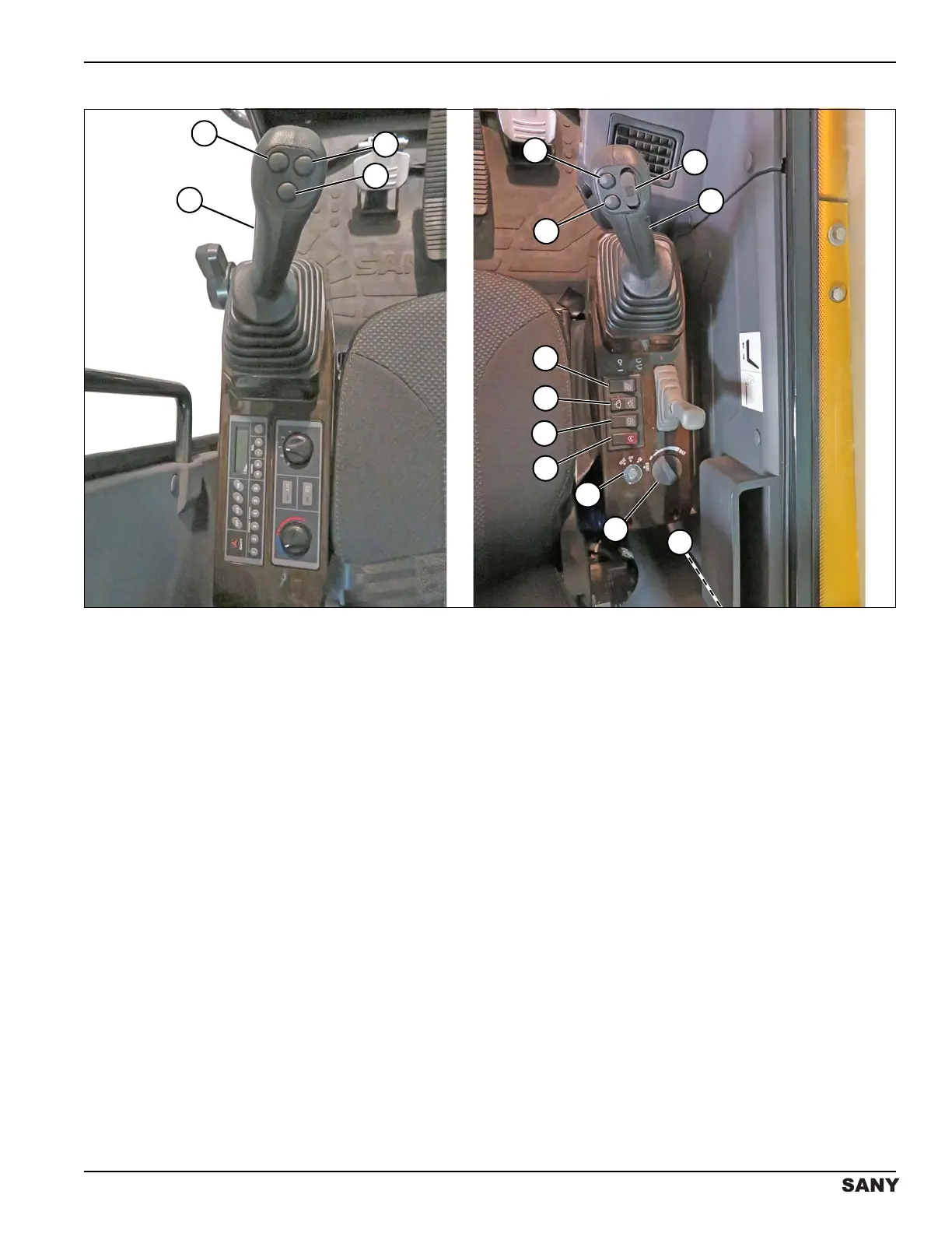 7 Auxiliary hydraulic switch (page 3-18) 15 Travel alarm switch (not shown, page 3-20)