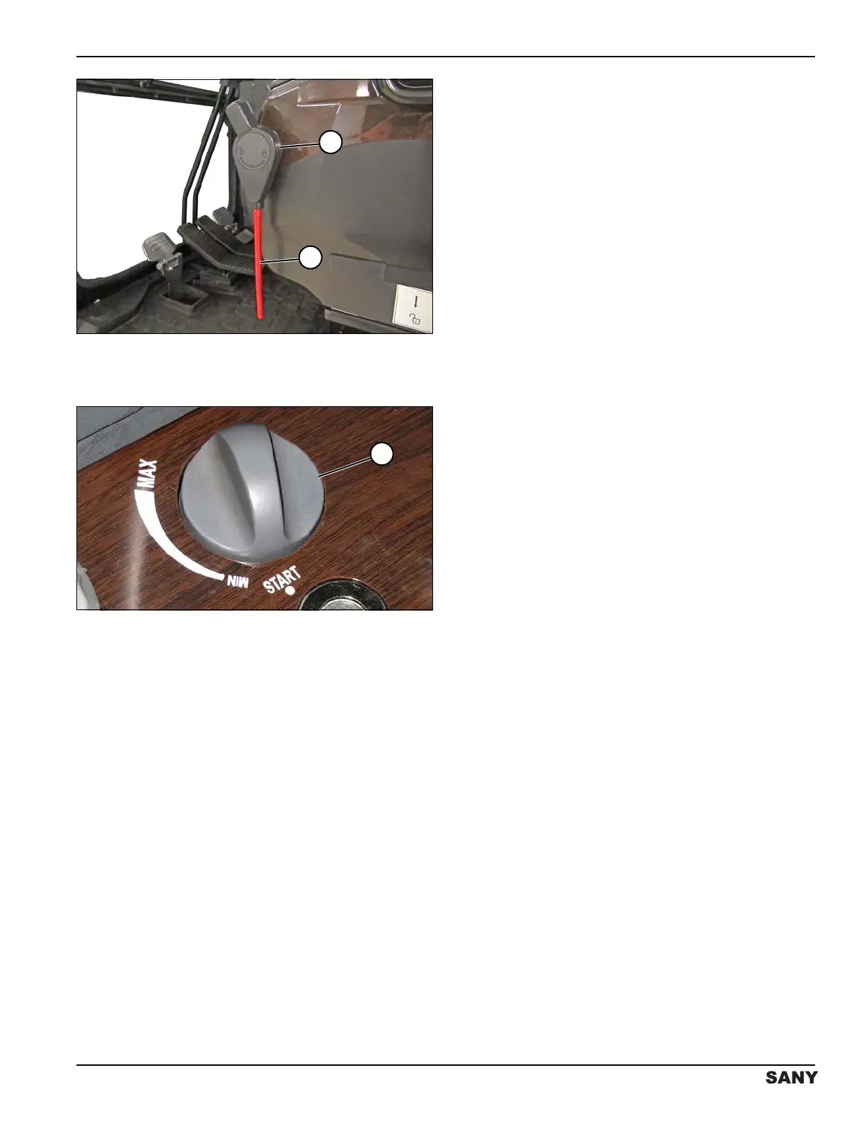 4. Adjust the throttle control dial (1) to MIN (low idle)