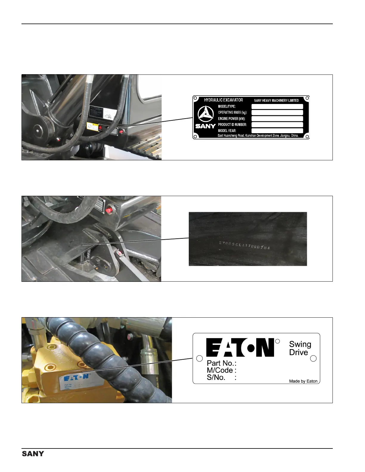 will be needed by a SANY dealer when ordering replacement parts or providing assistance for your machine.