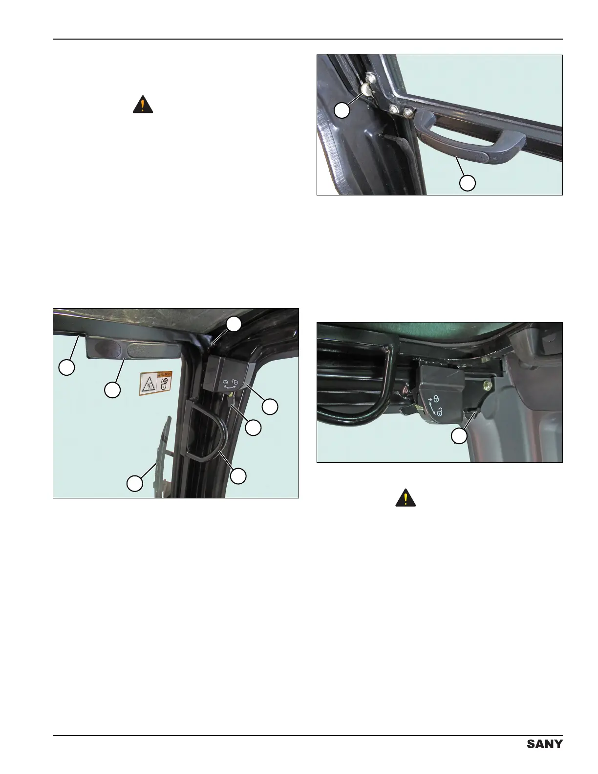 • The right side windshield grip (6) and latch (4) are