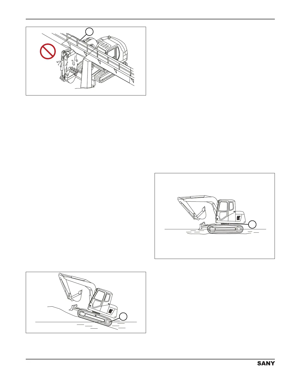 • Operate the machine slowly when traveling