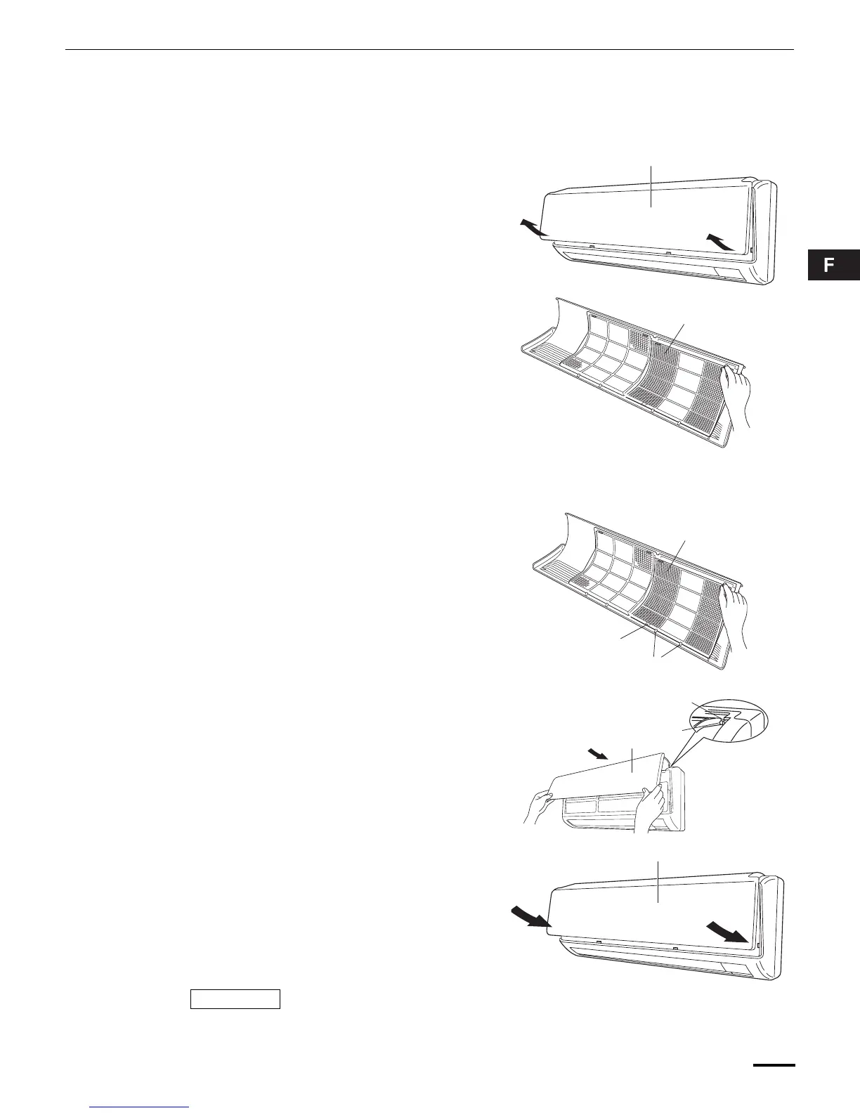 de la grille d’arrivée d’air soient insérées dans les rainures sur la partie