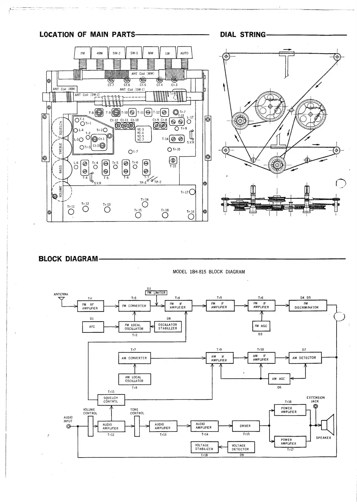 Sanyo 18H-815 - Component Location and Diagrams; Location of Main Parts; Block Diagram