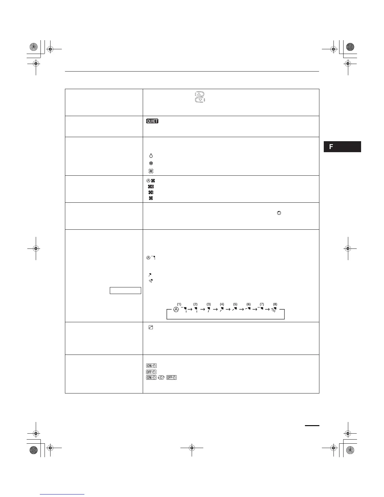: La direction du flux d’air peut être réglée manuellement. (six positions)