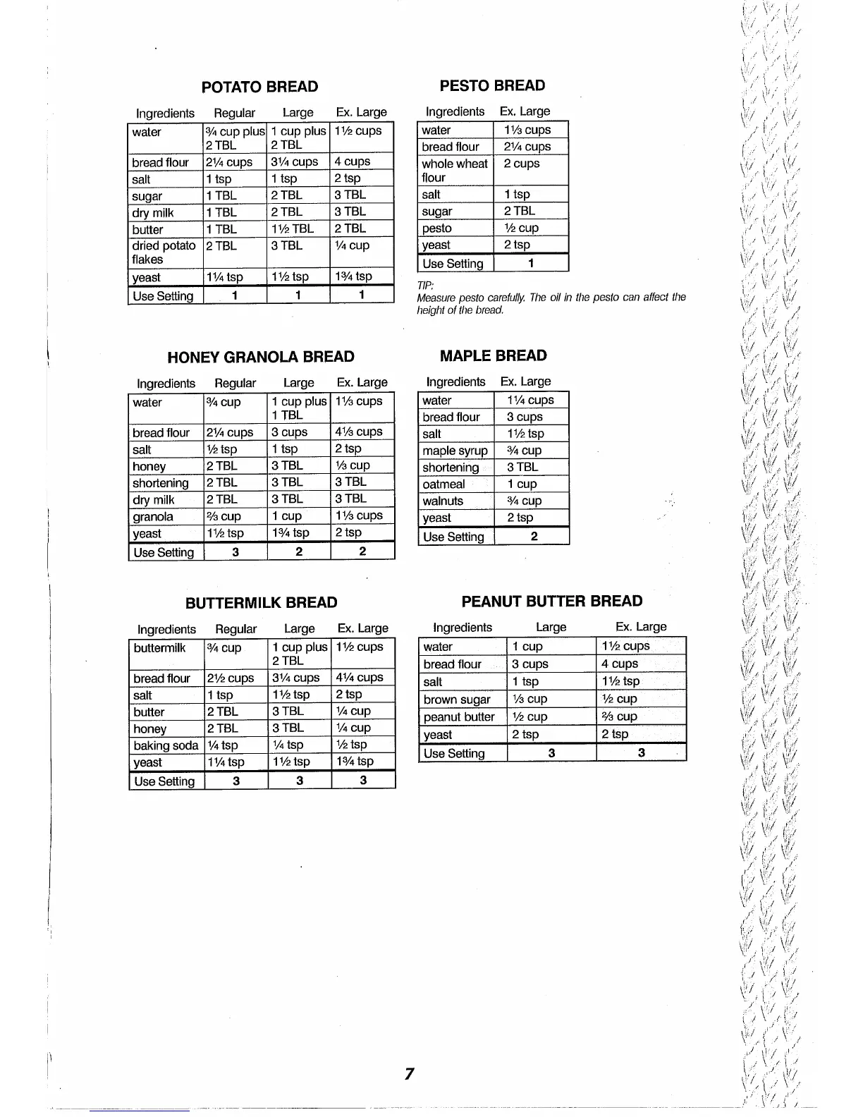 Sanyo Bread Factory Plus SBM20 - Potato;Pesto Bread; Honey Granola Bread; Maple;Buttermilk Bread; Peanut Butter Bread