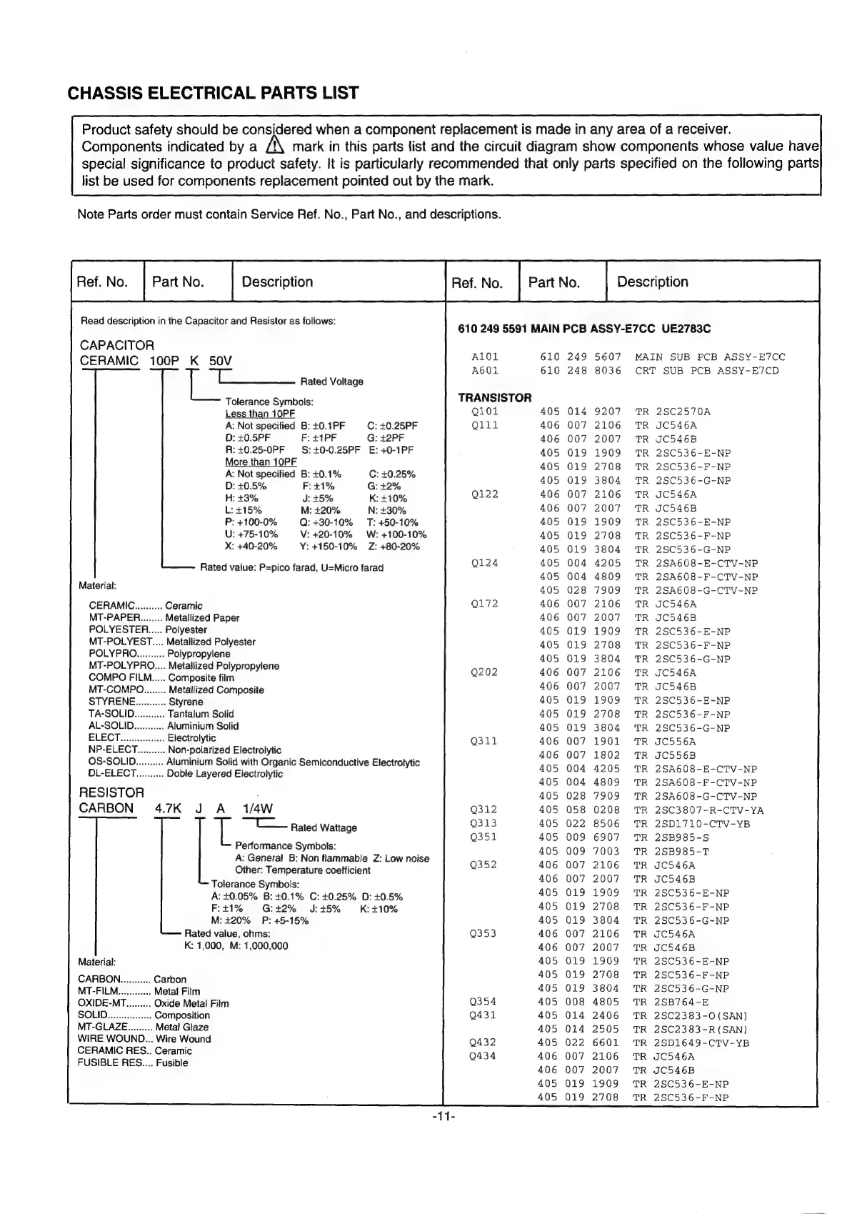 Sanyo C14EA80 - Chassis Electrical Parts List