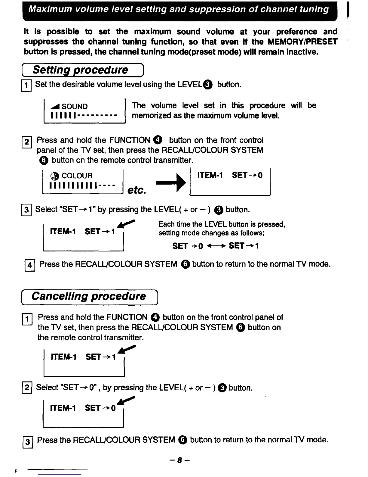 Select “SET- 0“, by pressing the LEVEL( + or – ) ~ button.