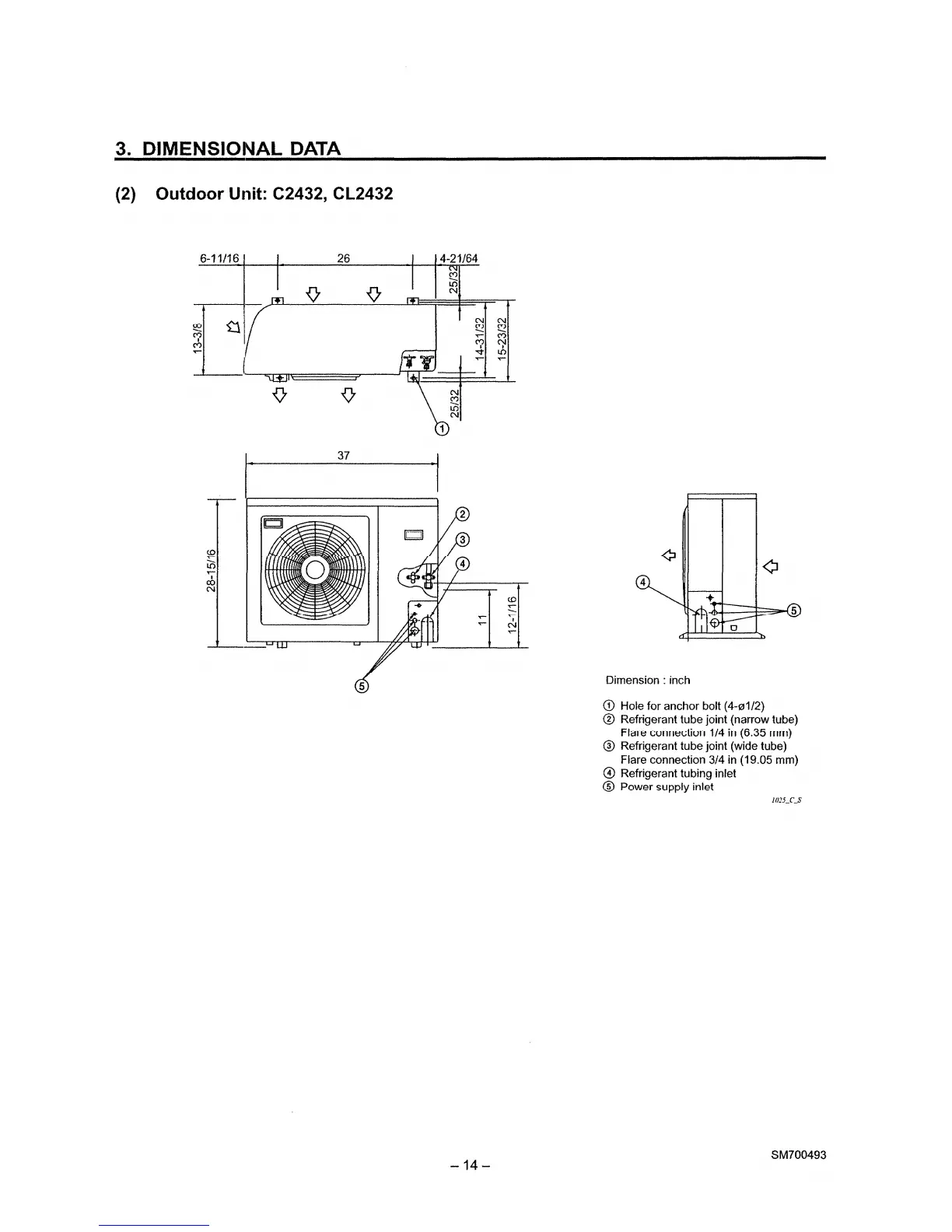Sanyo C2432 - Outdoor Unit Dimensions (C2432, CL2432)