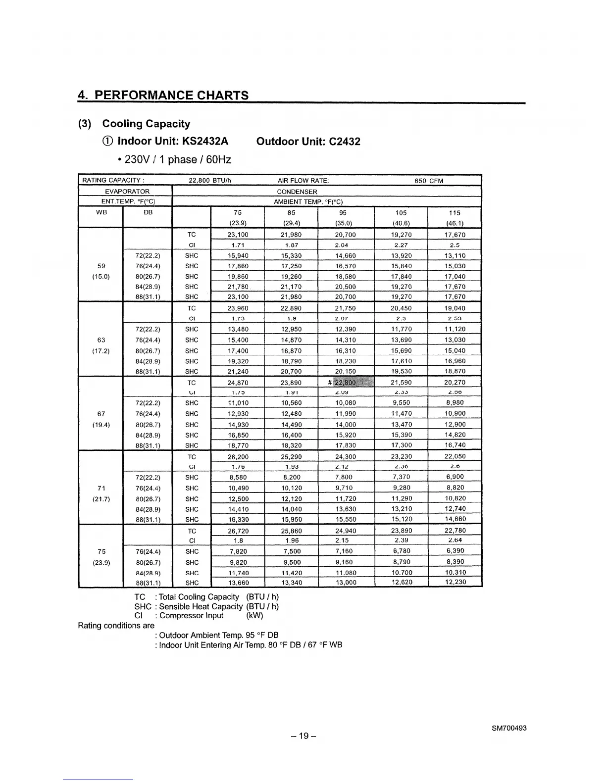 Sanyo C2432 - Cooling Capacity Data