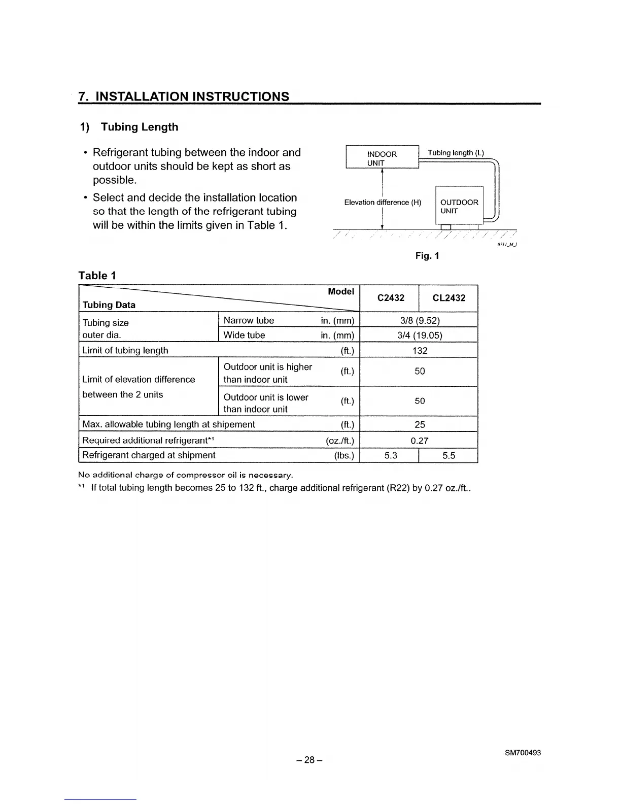 Sanyo C2432 - Installation Instructions; Refrigerant Tubing Length and Limits