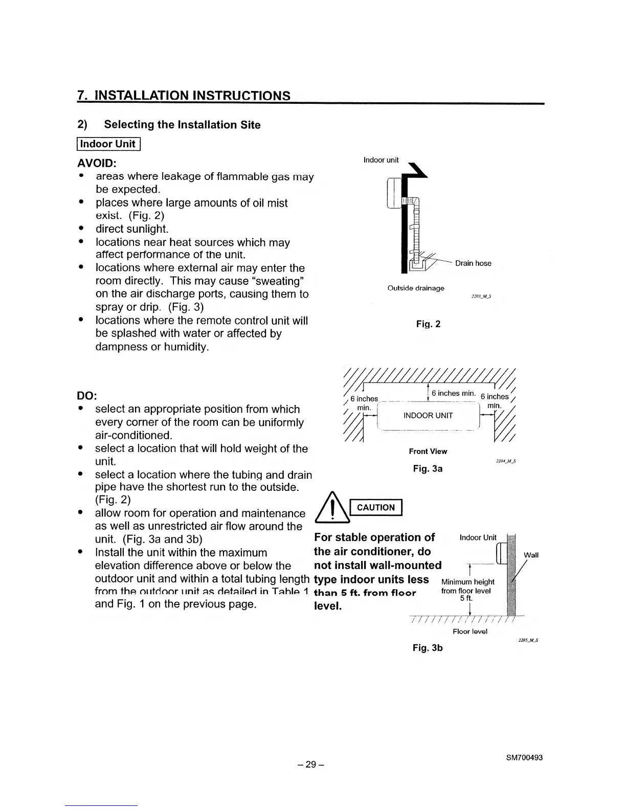 Sanyo C2432 - Indoor Unit Installation Site Selection