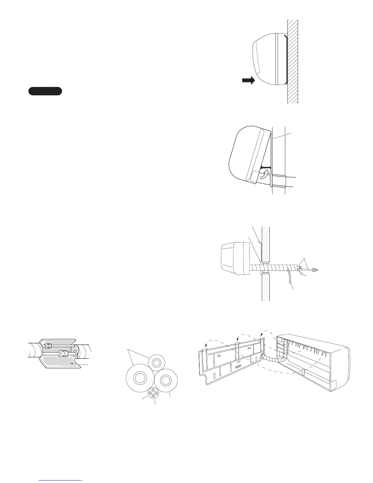 (2) Push the wiring, refrigerant tubing, and drain hose