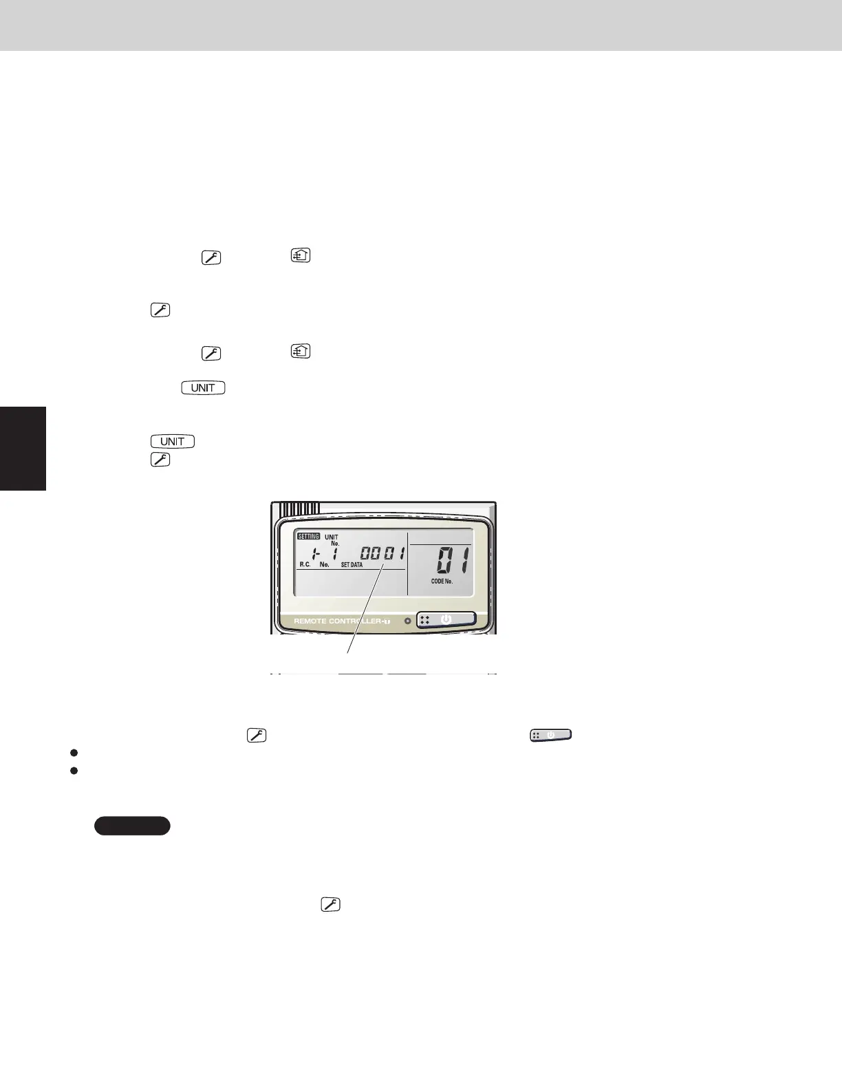 3. If correct operation is not possible, a code is displayed on the remote controller LCD display.