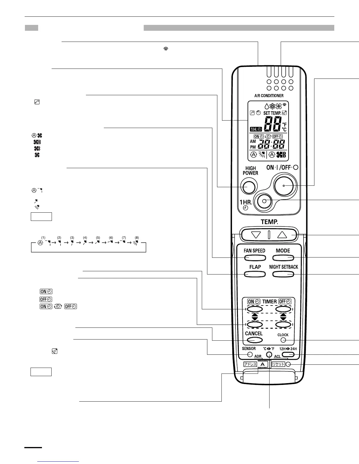 When you press the FLAP button, the air flow direction will be changed one by