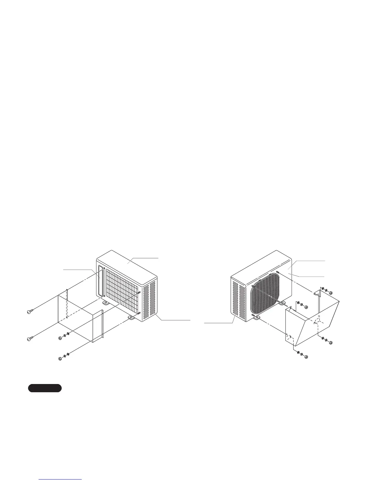 G In order to prevent contact of the bolts and heat exchanger and other parts inside the unit, install the windbaffle using